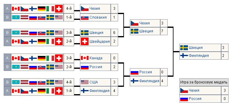 до боли знакомые результаты полуфинала/финала, турин 2006. г. http://ru.wikipedia.org/wiki/Хоккей_на_XX_зимних_Олимпийских_играх