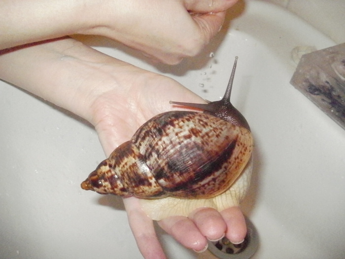 ОТДАДИМ. МЫ НАИГРАЛИСЬ. покупала дочке в прошлом году, девчёнка моя наигралась. да и не до улей ей сейчас - на носу выпускной. Улитки ещё не до конца выросли, но уже сейчас размер их раковины - примерно со средний женский кулачёк всего их три штуки. отдать можем по отдельности или всех сразу. если кто заберёт всех сразу - отдадим вместе с пластиковым прозрачным контейнером, в котором они живут. едят практически всё растительное, как поросята минимум ухода, ульки очень экзотичные. и самое главное - никакой шерсти и никакого шума! самовывоз из Волжского фотки своей свежей нет, потому ставлю из инета. примерно такого вот они размера и вида.