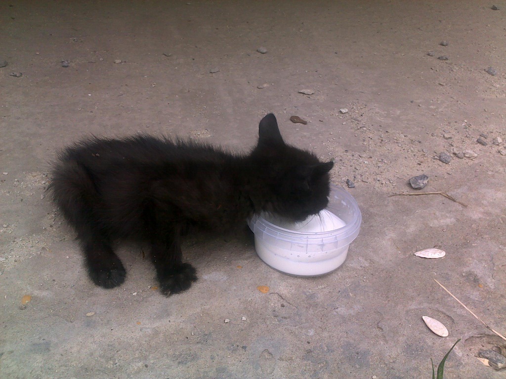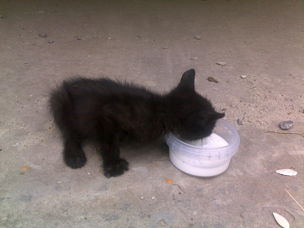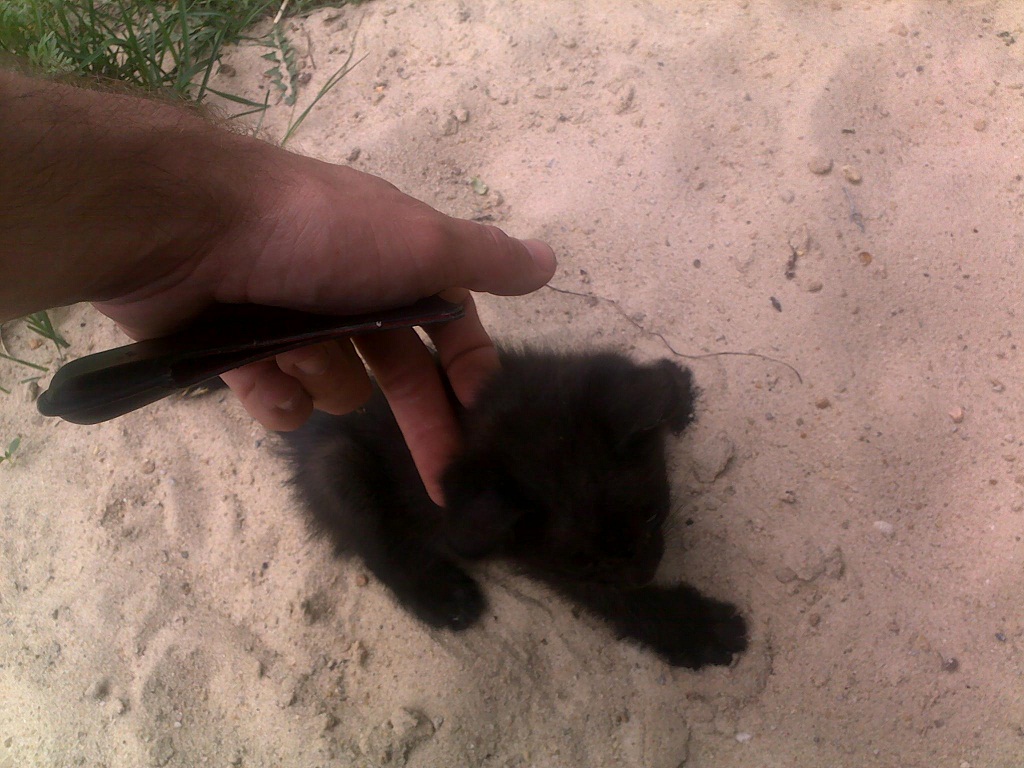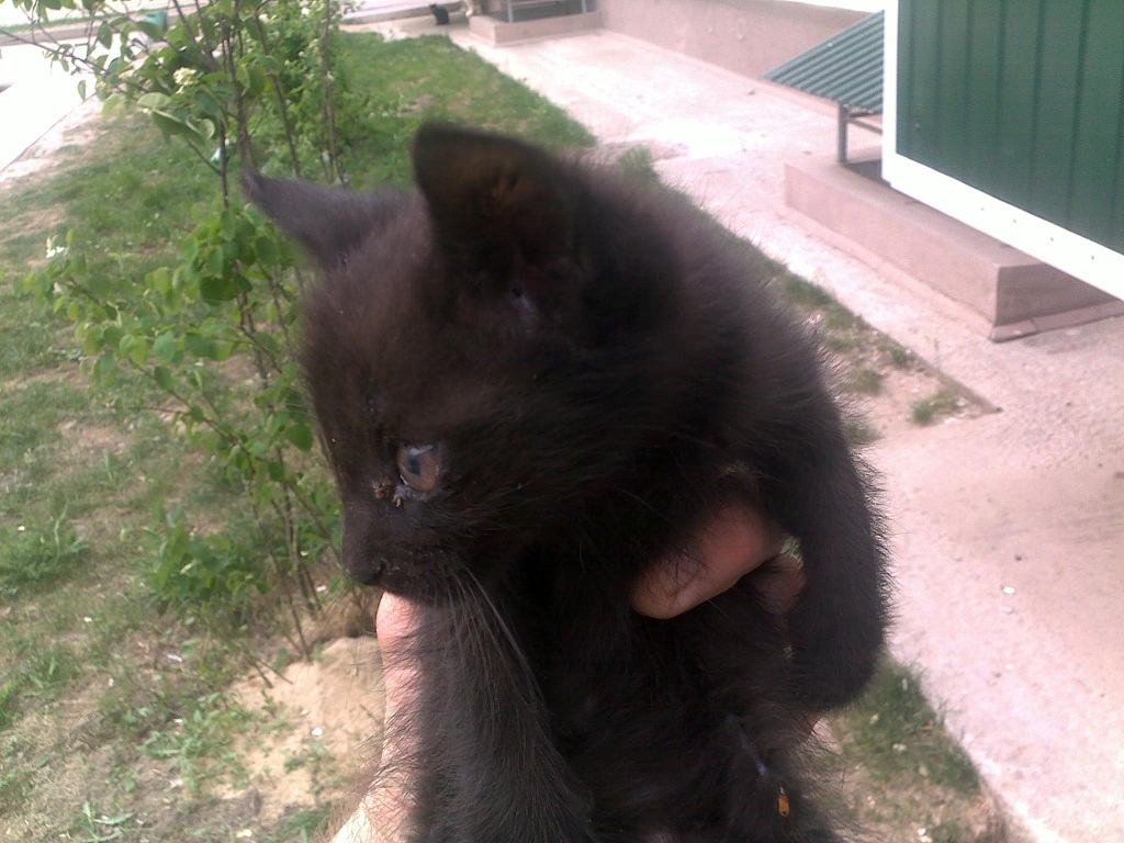 Всем привет! Буквально час назад мы с женой пошли прогуляться - подышать немного воздухом... Проходя мимо соседнего дома, в кустах услышали жалобный кошачий плачь... И увидели такую картину: две взрослых вороны напали на беззащитного котенка... Быстро подбежали, отогнали этих "коршунов" и, недолго посовещавшись, решили отнести его к нам во двор. Принесли, жена вынесла молоко и он буквально набросился на миску, стал жадно пить, не обращая ни на кого внимания (даже на подошедшего кота- "хозяина" двора). Стало его очень жалко... Занесли домой... Сейчас сидит на балконе, в ящике- дремлет. Себе оставить не можем- так как: 1. Жена беременна, 9 месяц- боится всякой заразы... 2. У нас уже есть кошка- породистая британка (тоже не хотим что бы она заразилась блохами, или еще чем- нибудь похуже.) Выбросить на улицу у нас не поднимица рука... Кот (?) чисто черный. Извинюсь за качество фото- фотографировал на телефон. Телефон для связи: 89880560001 Иван. Кировский район. Если кто- нибудь решить забрать это МЧЧ - сам привезу в любой район города, помогу деньгами на корм на первое время.