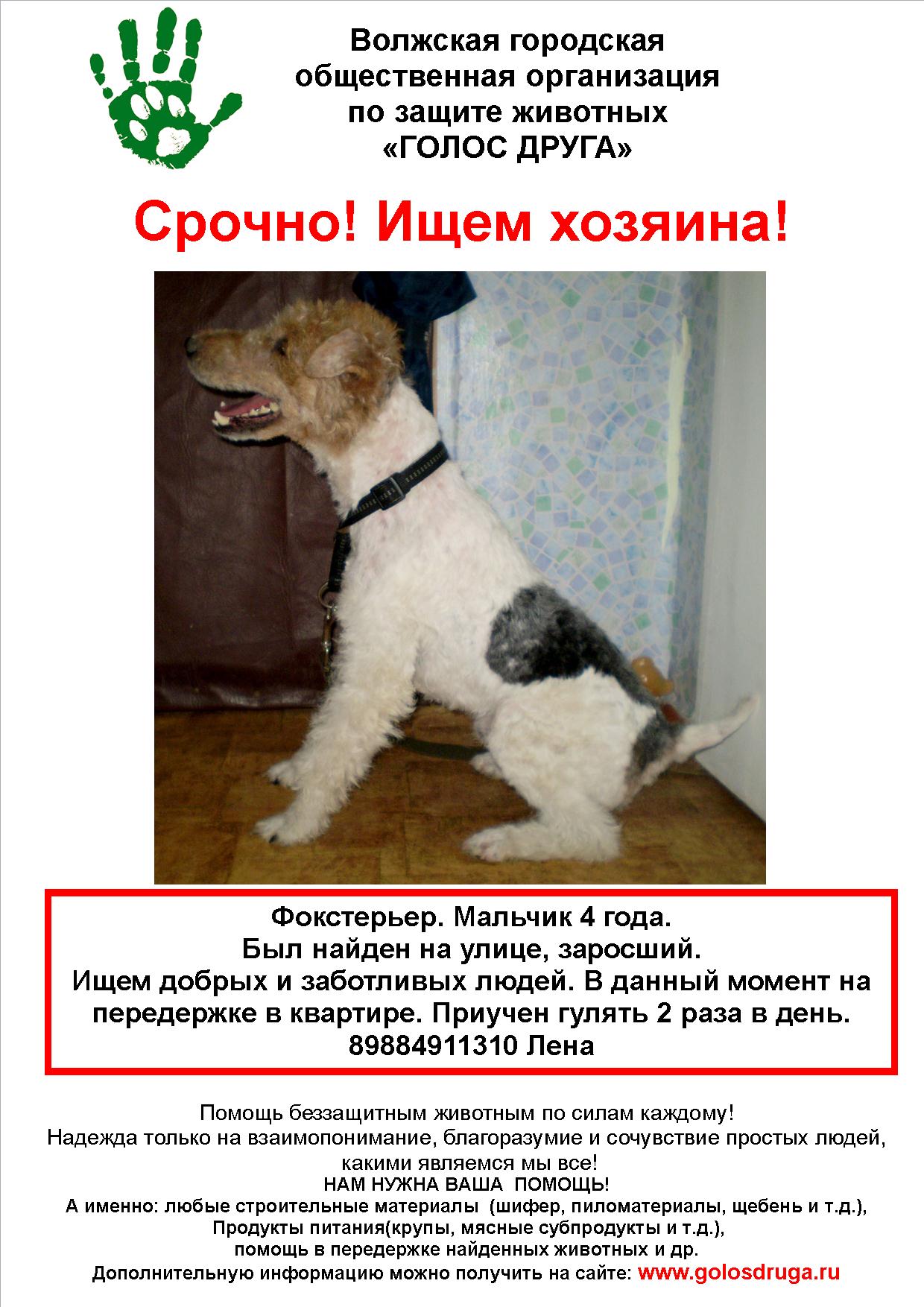 Срочно нужна передержка или добрые руки для фокс терьера !