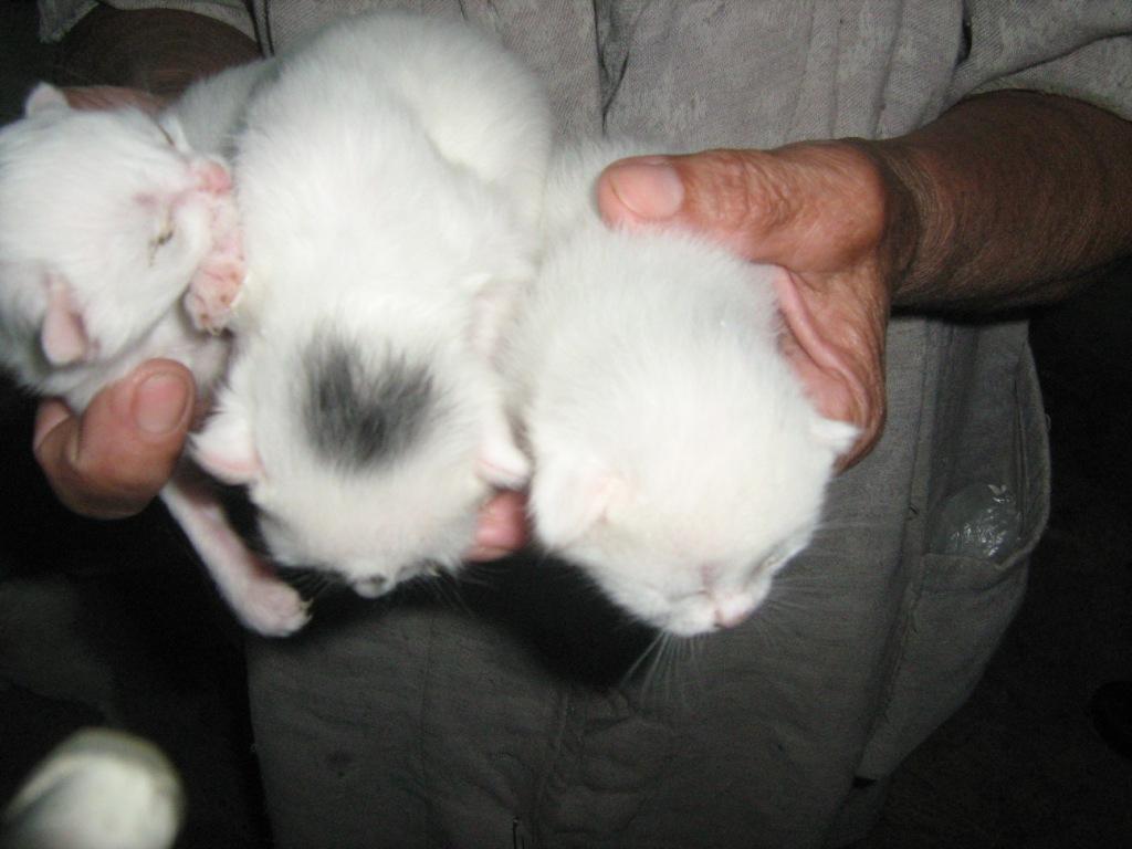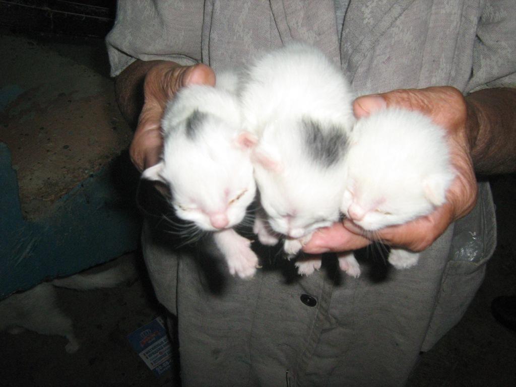 В подъезде кошка родила 6 котят: 3 белых, 3 черных. Они ещё не открыли глазки, но уже ищут дом (где-то через месяц, конечно) Мама у них очень красивая! Уборщица - добрая женщина, заботится о них пока