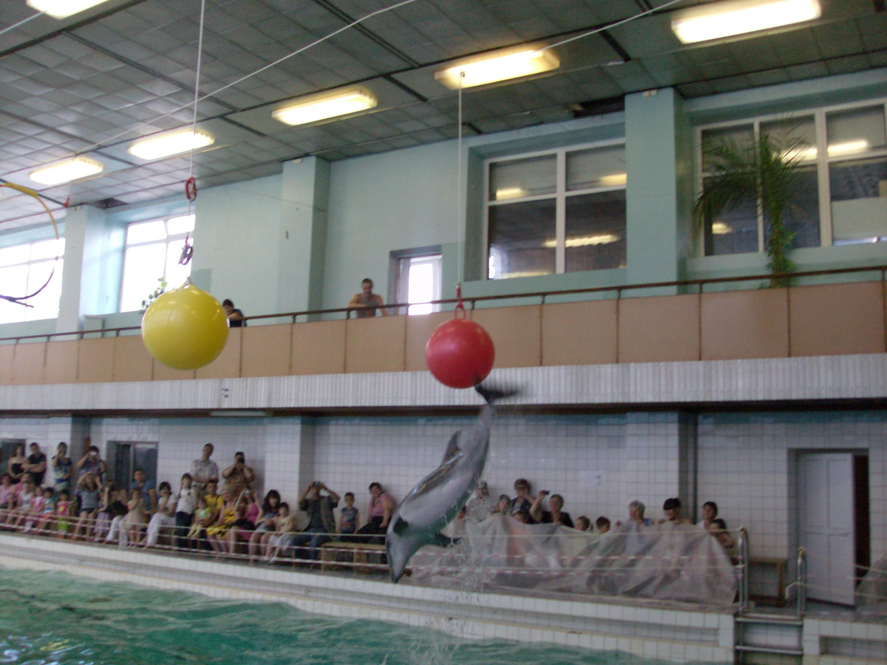 В Саратове все лето находится на гастролях анапский дельфинарий. Располагается в обычном крытом плавательном бассейне, наполненном морской водой. Вход на представление - 400р. Там 2 дельфина и один морской котик. Дрессура хорошая. Само шоу - УГ. Ничего особенного, но детям нравится сам факт созерцания дельфинов. Дети - 70% гостей. Длится шоу - около часа. Потом с дельфинами можно сфотографироваться и искупаться. Фото с дельфином - 200 р/кадр(своим фотиком), 300р - фотограф. Фотку выдают тут же, или сфоткают на твою SD. Купание -1000р. По времени 2-3 минуты. Сначала едешь на одном, потом на другом, потом на обоих. Всего три круга по бассейну. Ничего особенно делать не нужно. Дельфины сами подплывают, хватаешь за плавник - и они сразу едут. Если в момент купания ты хочешь, чтобы тебя фоткали (твои друзья твоим фотиком) + 200р/сколько хочешь кадров.