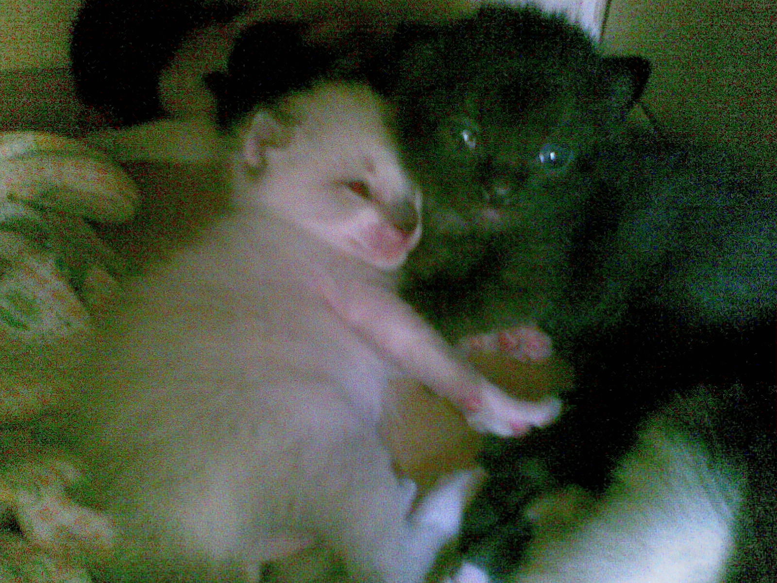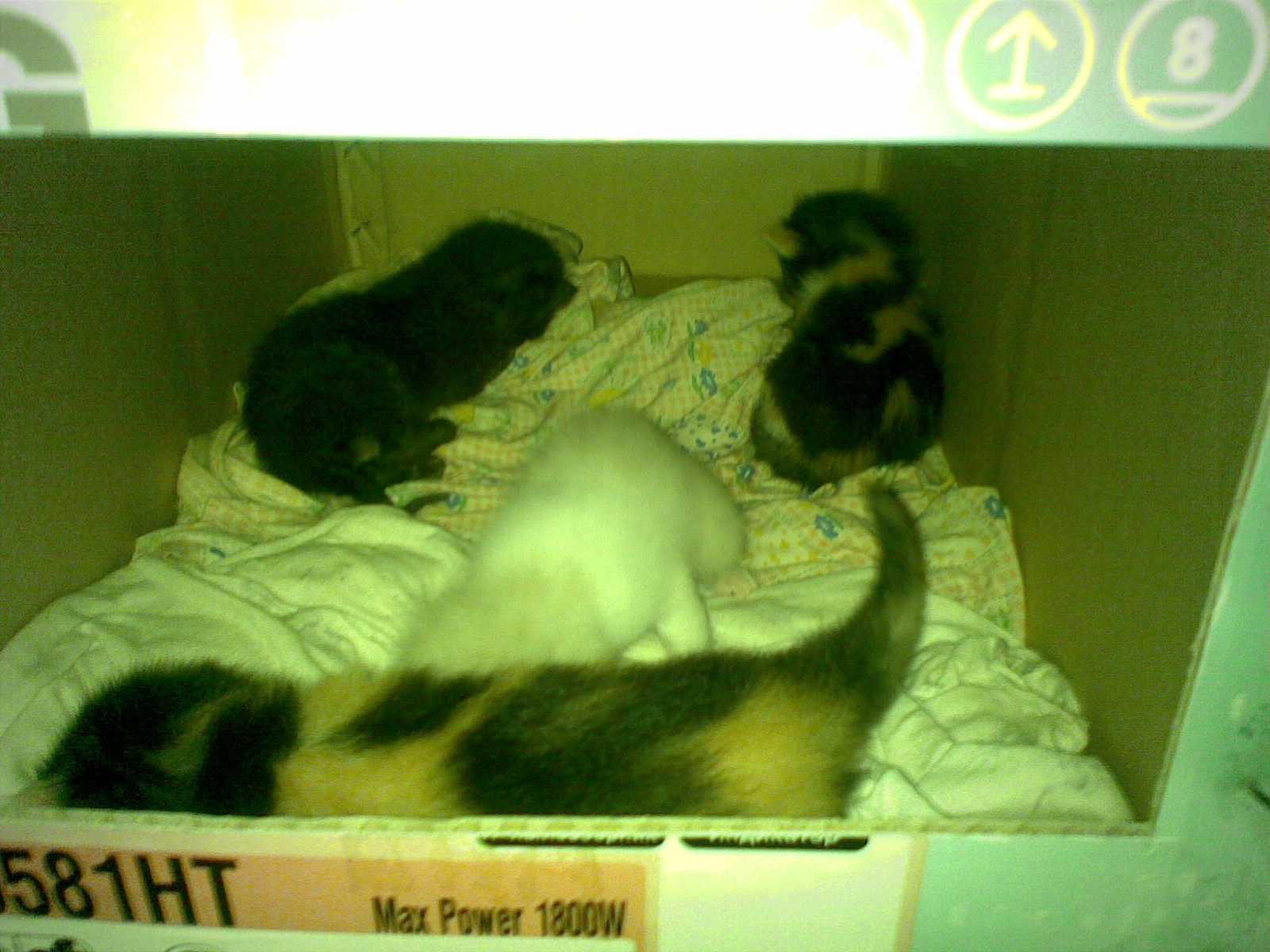 прошу прощение за качество, с телефона, фотика нет, да еще котята вертятся постоянно. Крохи еще на улице, живут в коробке, но очень симпатичные, уже открыли глазки, активные, шустрые