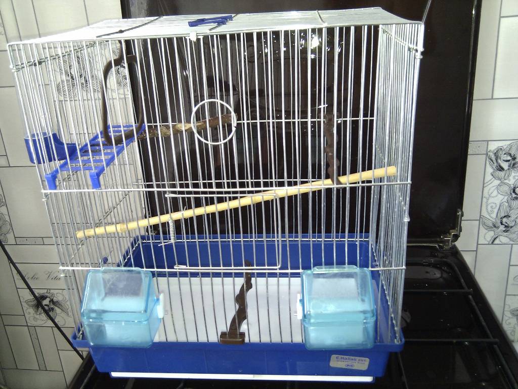 Клетке ровно две недели от роду, причина продажи замена на более объемную, (ниже фото) т.к. два попугайчика. Размер клетки длинна 38см. ширина 25см. высота 43см. В ней вынимаемый поддон, две кормушки, поилка, кольцо лесенка, и перекладины. Имеет две дверцы, одна для купальни или гнездования, вторая по центру. Цена 400р. На птичке (только сегодня был) такая клетка стоит 700р. Фото самой клетки Фото на то что заменил.