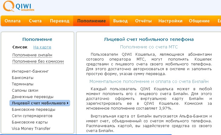 Есть ещё один способ: через Qiwi(действуют те же ограничения насчёт 150 рублей). 1) Переходите по ссылке: https://w.qiwi.ru/features.action и регистрируетесь на сайте(регистрируете свой номер Билайн). 2) После регистрации заходите в свой личный кабинет и слева выбираете нужного провайдера. 3) В следующем окне в разделе: "Выбрать способ оплаты" выбираете "Билайн"(Оплатить со счёта мобильного телефона) и жмёте кнопку "Заплатить". Далее следуете инструкциям.