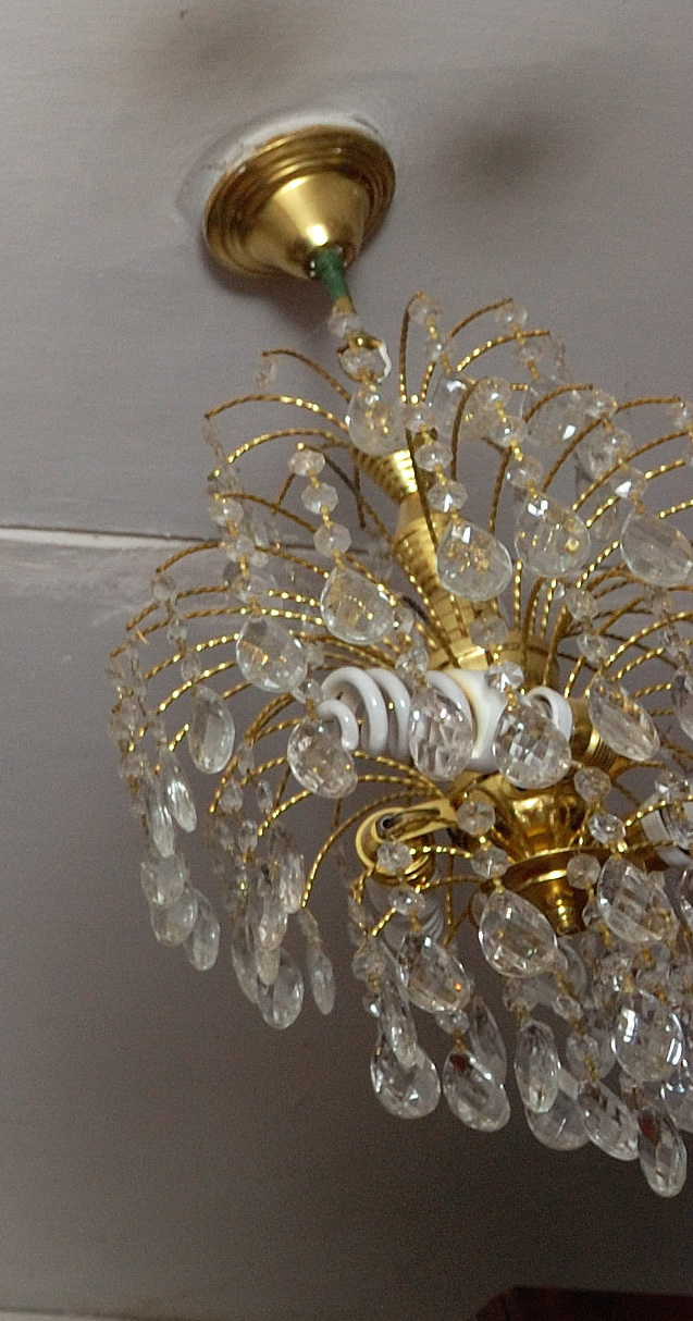Господа, вы где хрусталь на турецкой люстре увидели-то? Не обратили внимания на то, что даже сам топикстартер написал "хрусталь" в кавычках? И не такая уж она и старая... Лет 10-15 назад такие продавались повсюду...