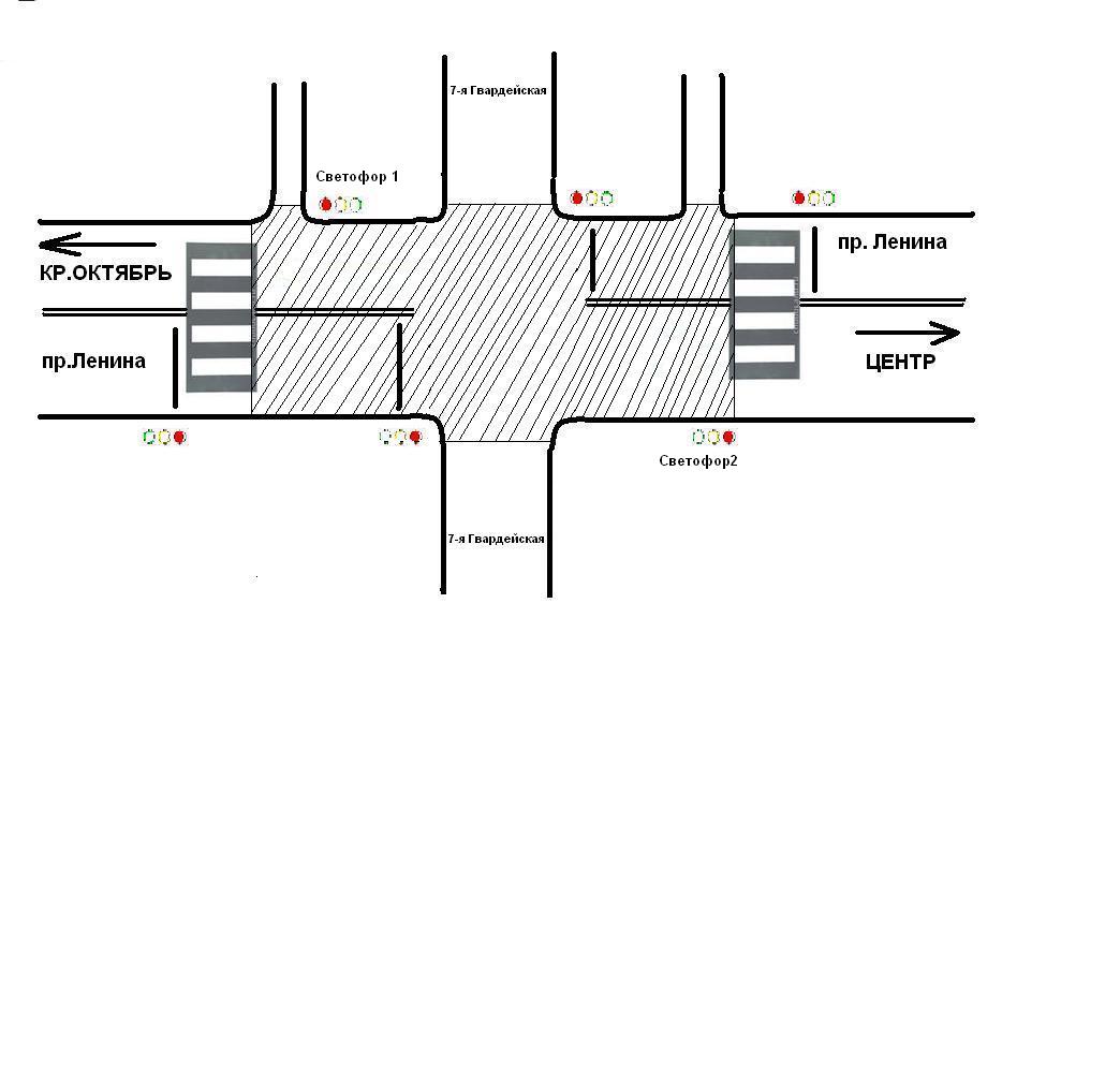 По-моему, ответ конкретный. Есть перекресток 7-я Гвардейская - Ленина (в ответе он фигурирует), есть разрешение при определенных условиях проехать. Нет стоп-линии - заканчиваем проезд перекрестка.