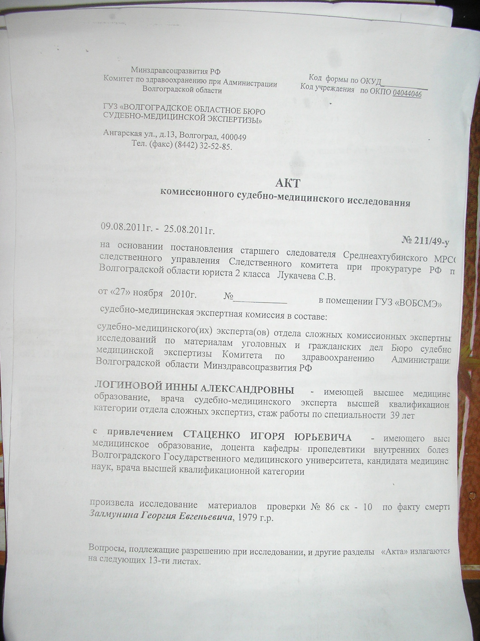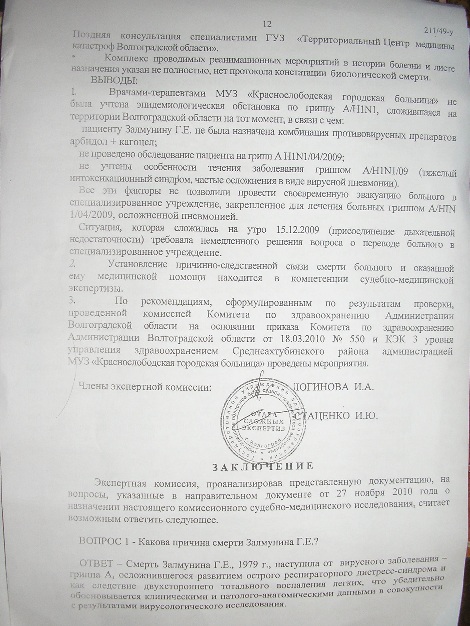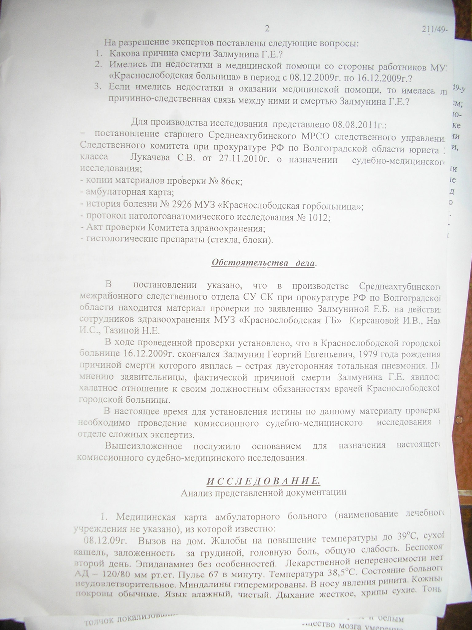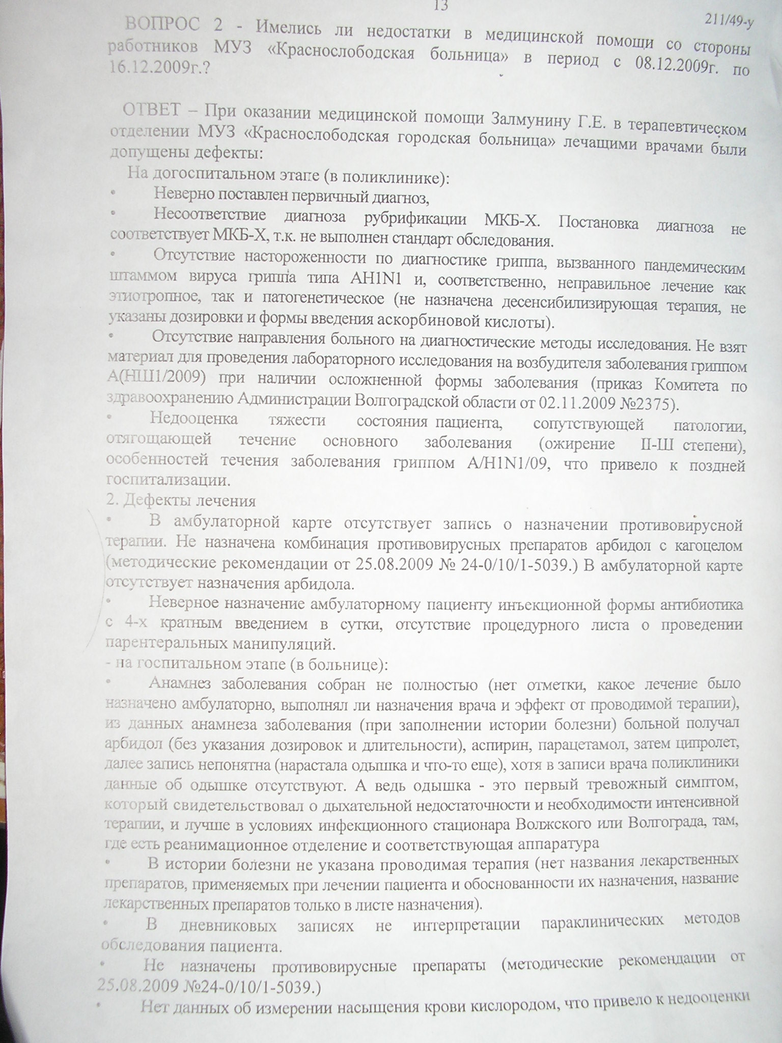Другой документ - заключение судмедэкспертизы. В нем на 3 листах перечислены нарушения, начиная с неправильно поставленного диагноза и нарушениями организационного характера, и тд.