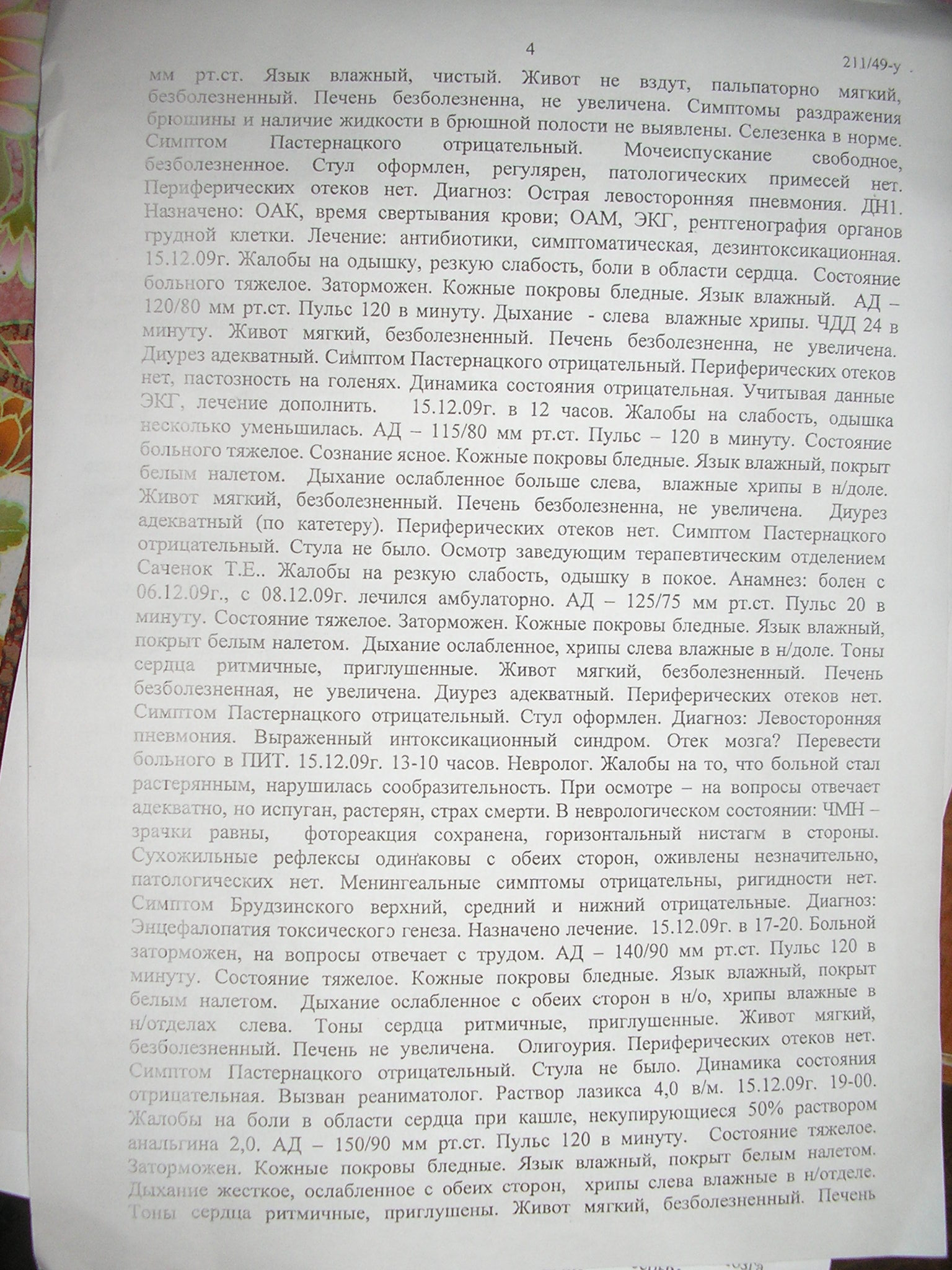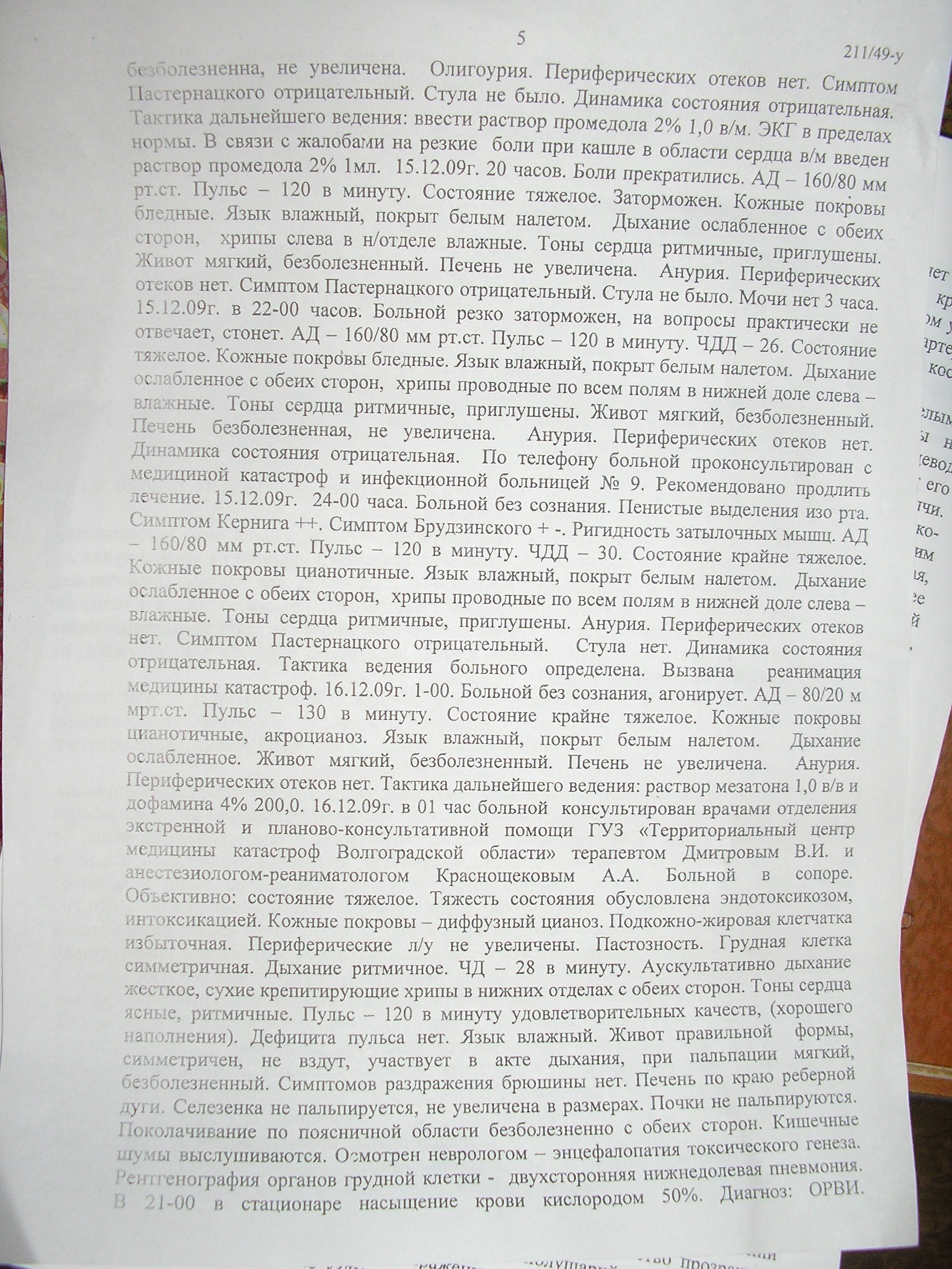 Позадавал бы вопросы знакомым медикам, в том смысле - как и что обычно делается в подобных случаях, и в подобных случаях, но зимою 2009, да еще и в больнице областного подчинения.