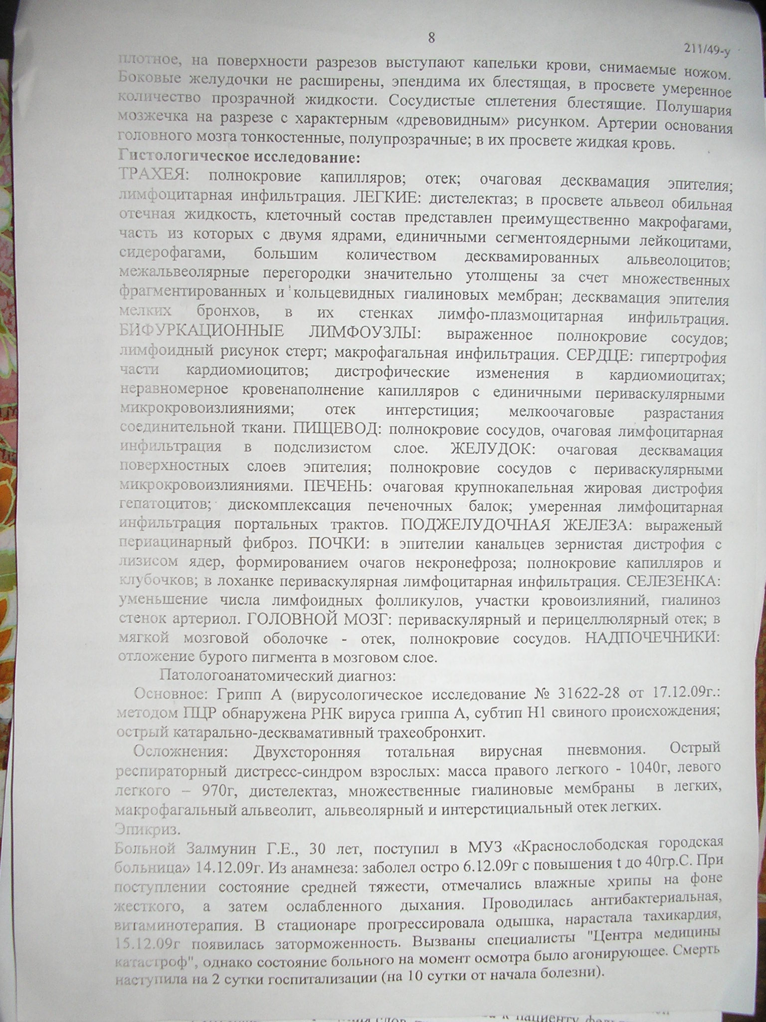 Единственное что сильно смущает, так это тот самый свиной грипп. На этапе диагностики (насколько я понял) не были проведены лабораторные исследования на этот счет. Хотя в то время, по всем каналам СМИ трубили об этой проблеме и врачи должны были насторожиться.