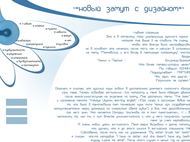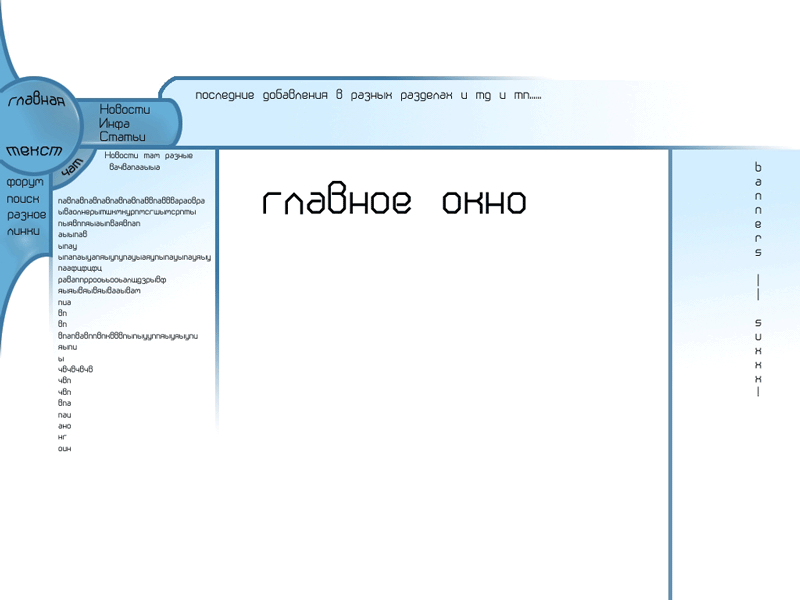 В общем мне понравилось, но слишком узкая часть главного окна, мож баннеры лучше под меню поместить... А так - свободно и не отвлекает яркими и контрастными сочетаниями цветов (чем удобней читать текст - тем лучше). Удачи в Вёб-дизайне ;-) Gin&Tonic.