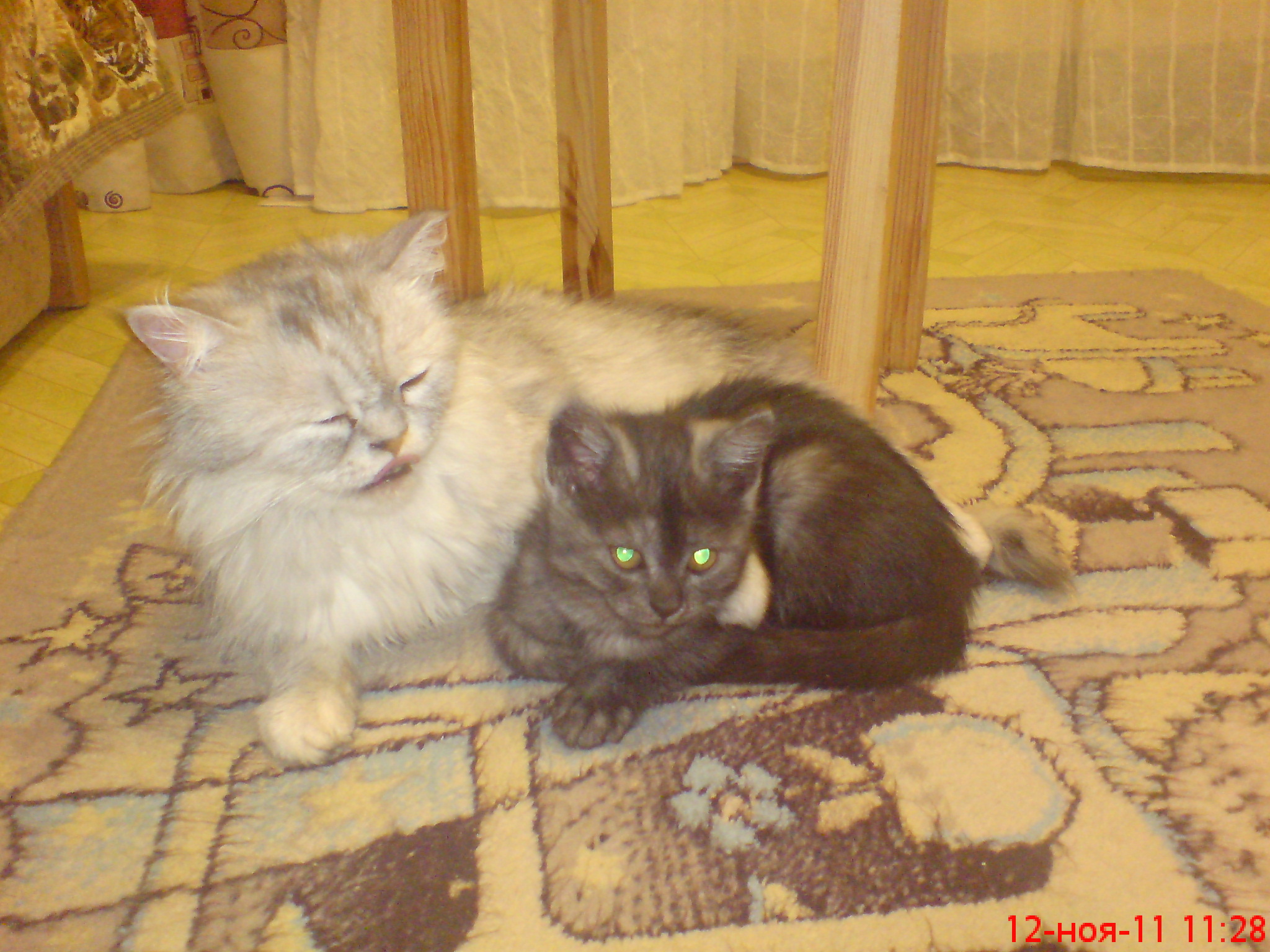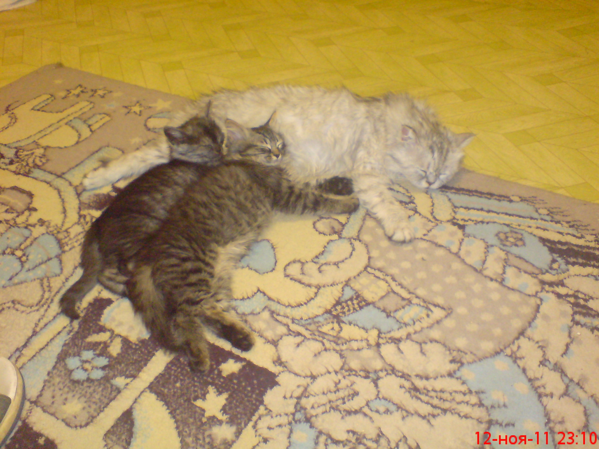 забрали только рыжего пока. остались две маленькие кошечки (одна пушистая-пушистая, а вторая гладкая, ушки и подшерсток серебристые, сама черная) и кошка-мама.