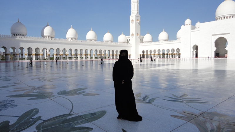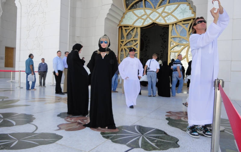 Для начала черное платье. Куда же без него... Это мечеть шейха Заеда в Абу Даби. Красота неописуемая! Мрамор такой белизны, что глаза режет. Всех женщин туда пускают только в абае и хиджабе.