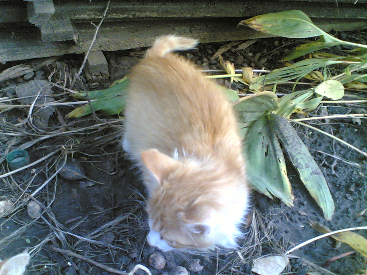 Ах да, забыл про рыжего упомянуть. Есть еще рыжий с белыми пятнами забияка, сегодня я его видел первый раз, но тоже из этой "братьи" шустрый такой малый, курицу сегодня ел и рычал, остальные ели потихому)))