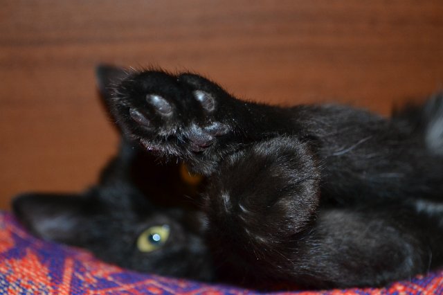 Найден черный маленький котенок со сломанной лапкой, очень просим о помощи.