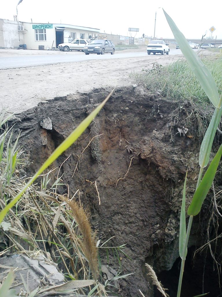 На днях заехал на шиномонтаж по ул. Дорожников что рядом с мостом 3 продольной. По технической паузе нырнул через дорогу в камыши и офигел. Земля провалилась метров на 5 вглубь если не больше и диаметром около 3. Причем от асфальта метра 2-2.5. Промоина идет под дорогу! Куда позвонить или дорожники уже в курсе?