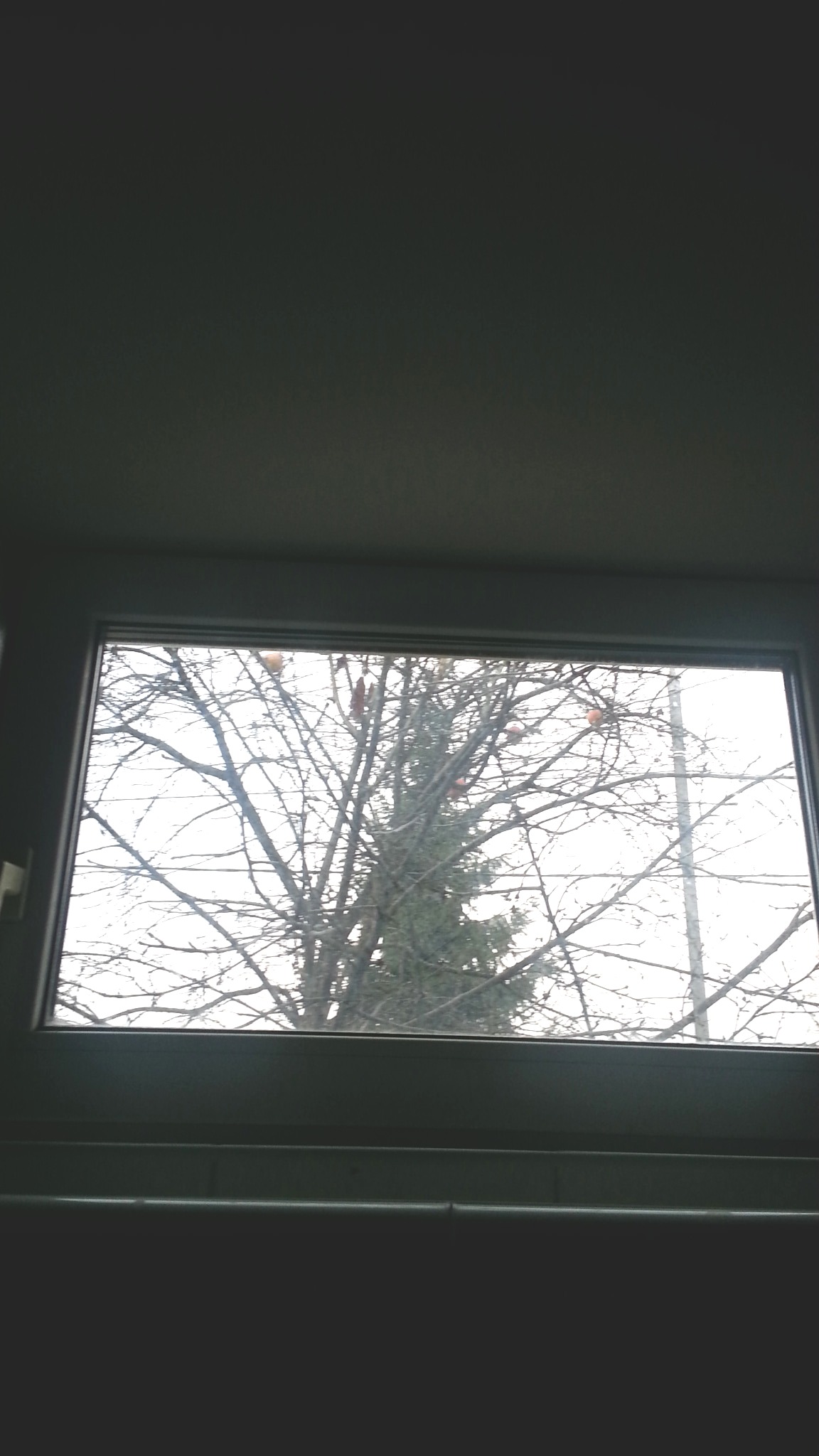 Яблоки на верхушке яблони эффектно померзли.