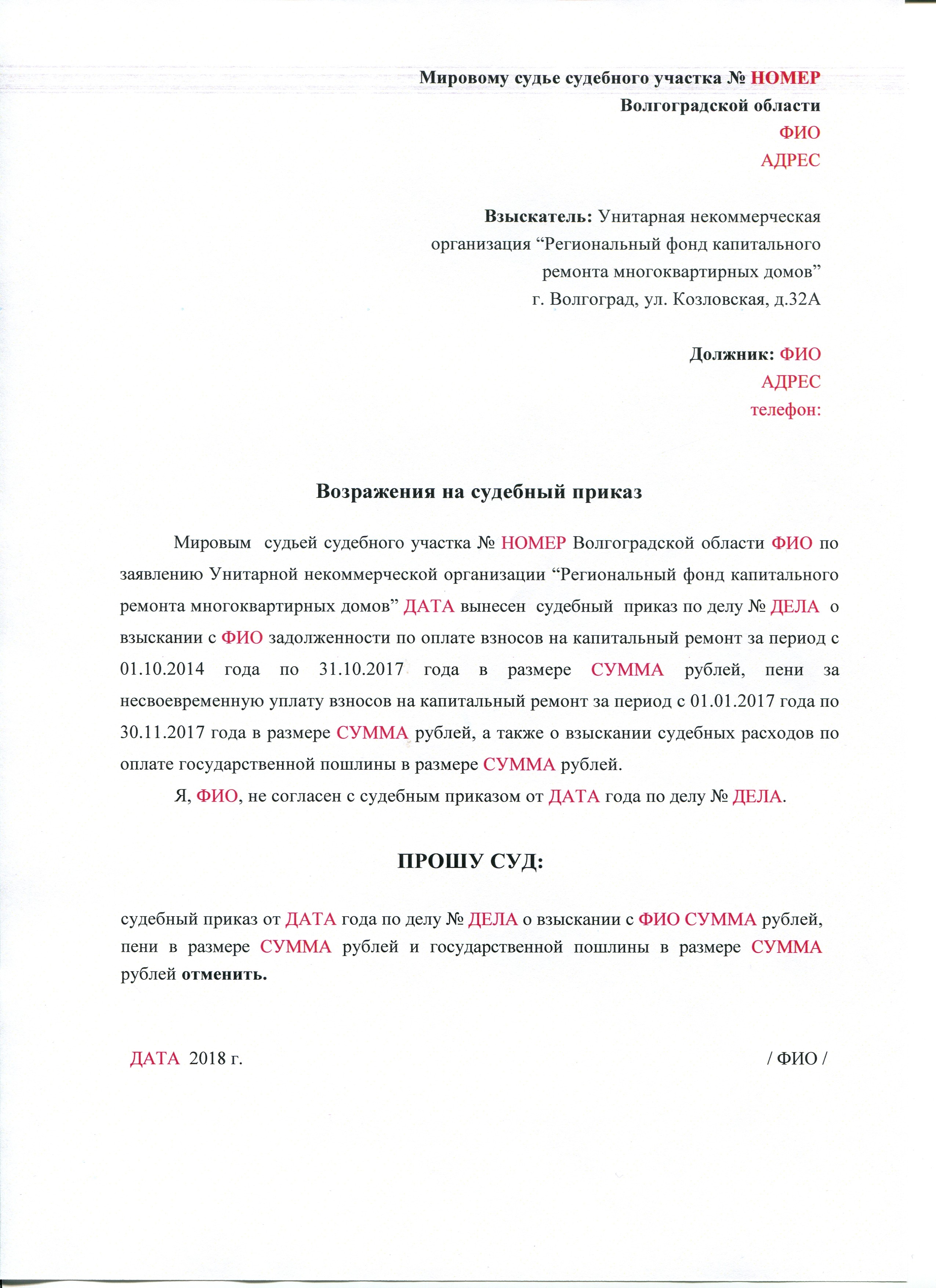 Вот и статистика начинает подтягиваться. Значит они массово, или все же выборочно от суммы 10000+ и сроком давности, зашли в суды. Образец возражения. Его надо направить в течение 10 дней, с момента получения приказа от мирового судьи.