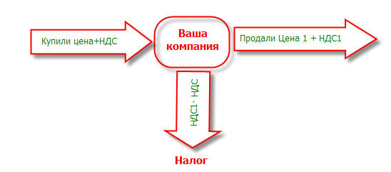 Далее, мы переплатили НДС1 за товар при его покупке и государство скомпенсирует его нам либо вернув деньги на счет, либо взаимозачетом с налогом на прибыль.