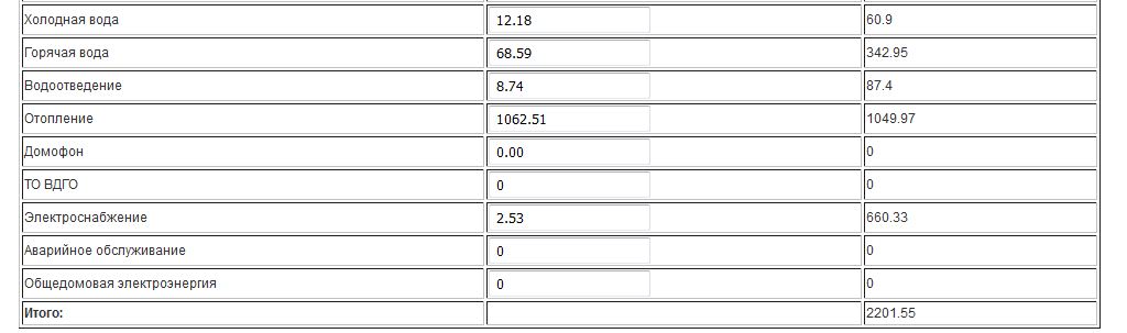 ЗЫ при сравнении отопление совпало. канализация по цене совпала о вот по обьемам нет... а вот остальное расходится.. почему то нормы завышены... норма---платежка 5,22----4,93 хол вода 5,43-----5,74 гор вода 10,36----10,96 канализация 5,53------6,67 ремонт и содержание.. еще и цена на горячую воду на 10 рублей выше