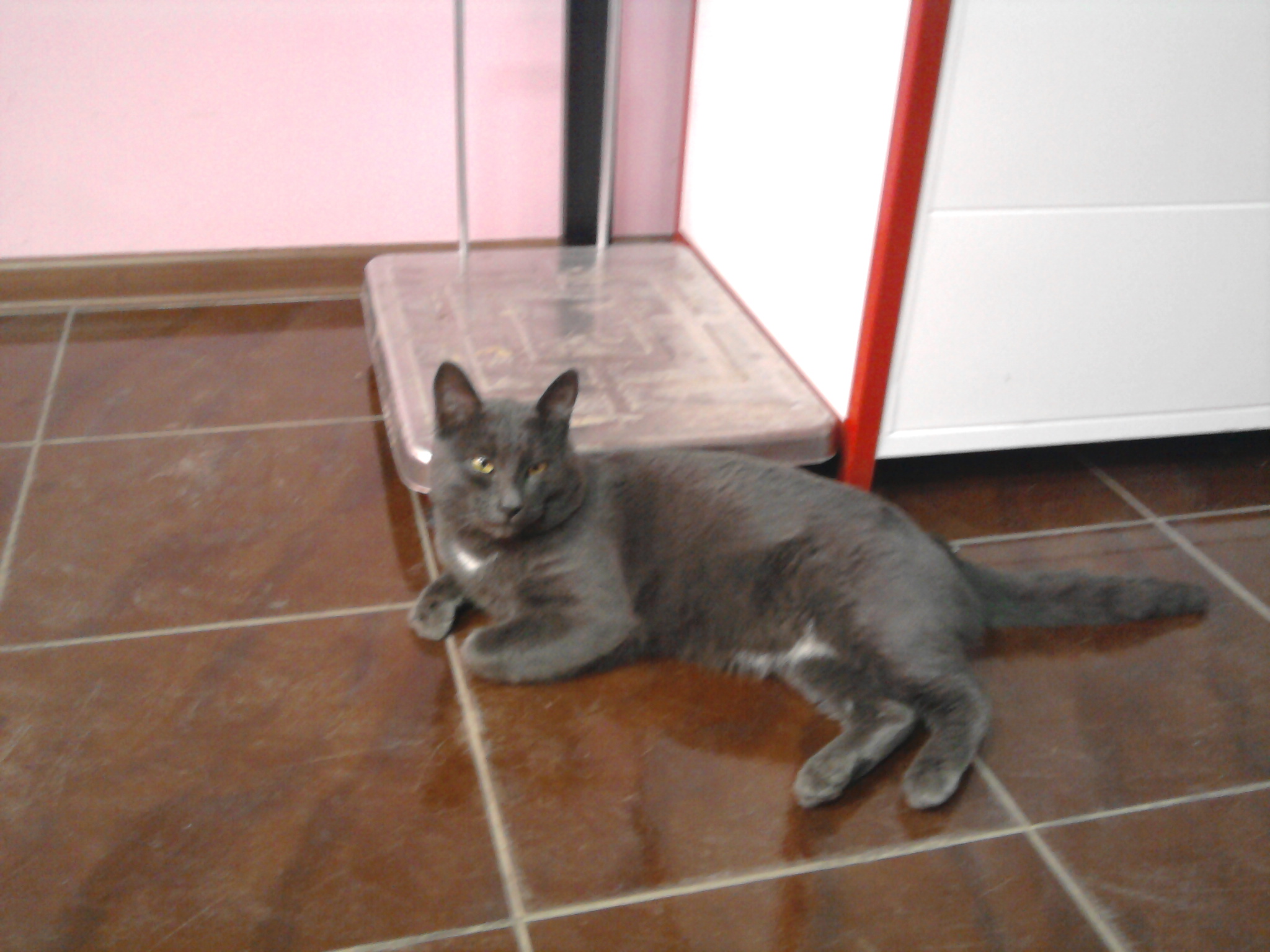Но все-таки мечтает вернуться домой... Глаза золотые, шуба жемчужно-серая, два белых треугольника - на груди и брюшке, размер крупный, визуально не кастрирован. Ласков, добр, пока сыт, но его там точно не оставят(((