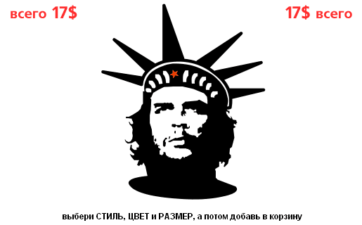 К вопросу о том, "что для вас Че Гевара", в интерпретации, "что он есть" сегодня для покупателей "стильных маек"... № 1 "Че Свобода": Статуя Свободы уже давно стоит без капитального ремонта. Наше предложение: отреставрировать её и заменить устаревшие части. Доктор Гевара покажет вам демократию! )
