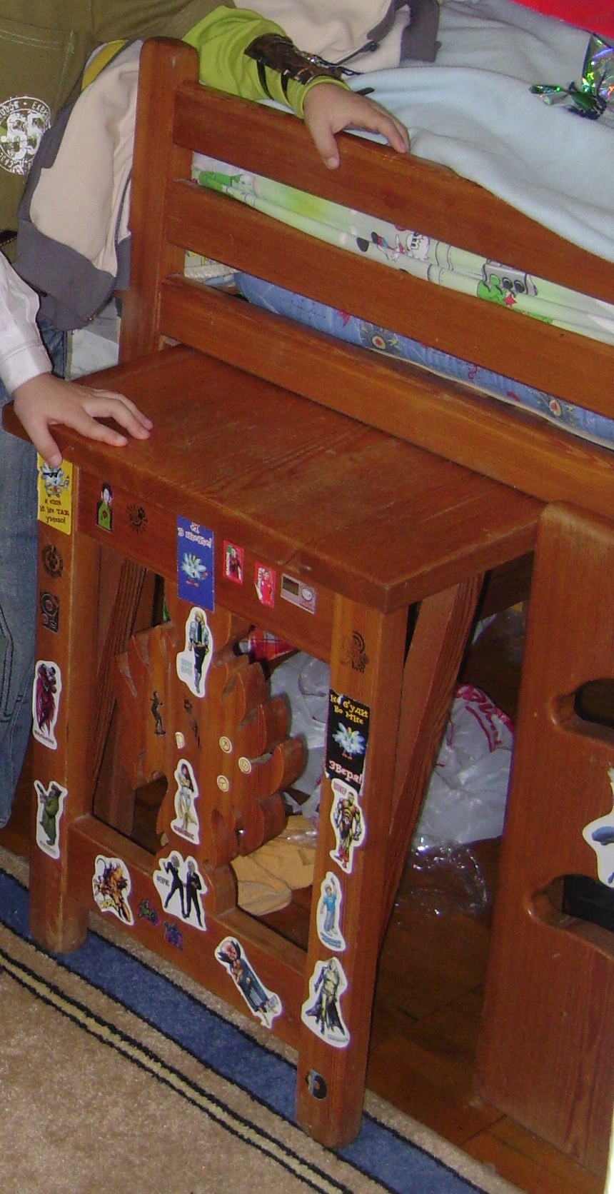 Продается детская кровать ручной работы ~ 90*150 см. из сосны. Отличное решение для малометражной квартиры или комнаты. - Лесенка. - Выдвижной столик. - Тумбочка с тремя ящиками. - Игровое место под кроватью или "склад игрушек". Ортопедический матрац сделанный под эту кровать 70*130 см. Кровать в разобранном состоянии. На фото общий вид спереди. Цена: 3 т.р. Тел: 89О236OО329