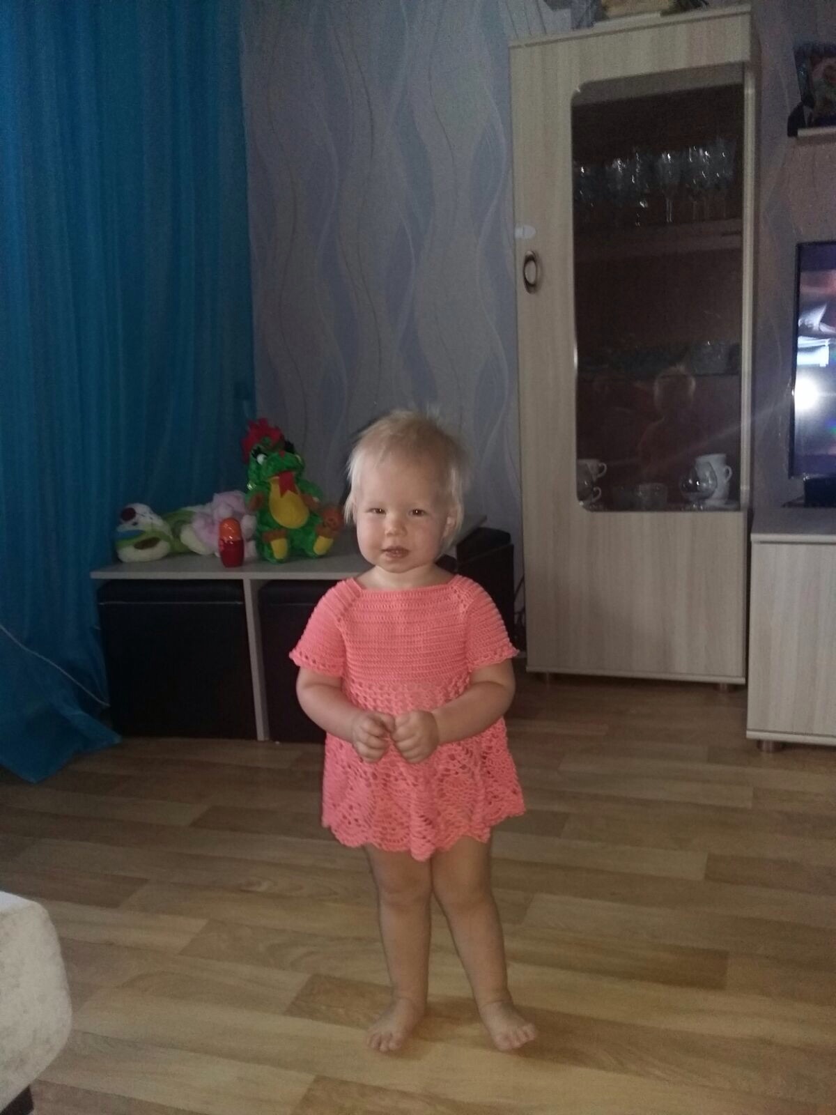 Ух ты! Я за ширину рукава переживала, оказалось зря... а вот юбочку можно было и подлиннее . Учту ошибки ). А вот цвет-персик ей очень идет!