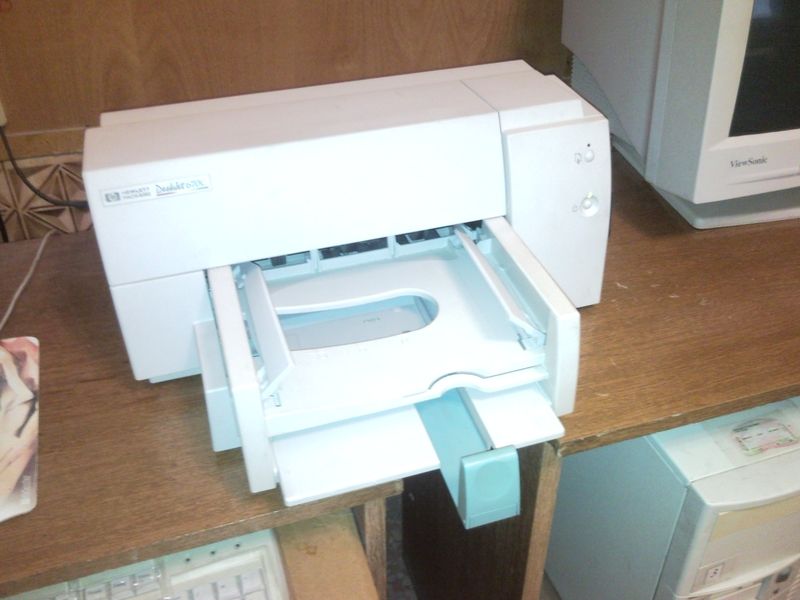 Отдам принтер HP DeskJet 670C в полурабочем состоянии: цветной картридж кончился и засох, черный работает если отпарить над чайником. Если заменить картриджи (они с печатной головкой) - будет нормально работать. В комплекте блок питания и интерфейсный шнур. Забирать из центра вечером.