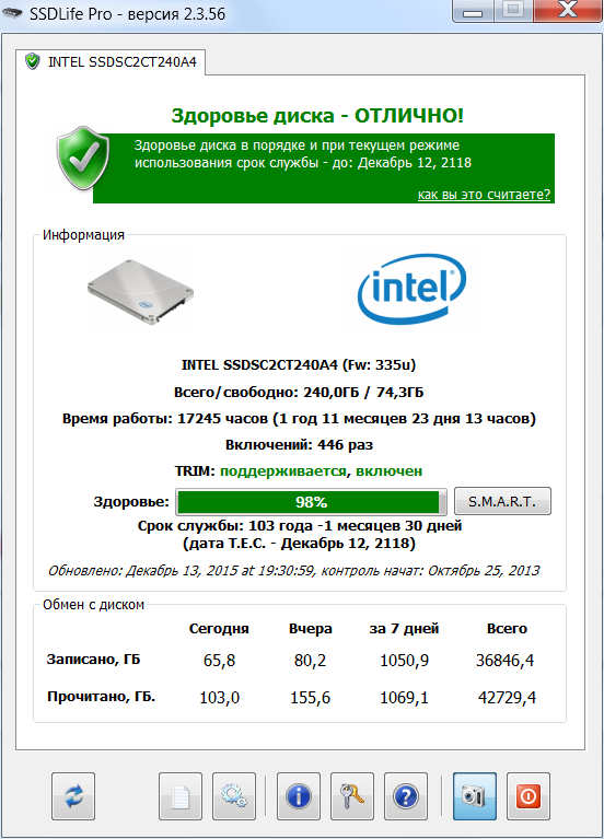 нежданчики... :-( нужна помощь Выбрал Интел 520 серии 120 гиг. Накатил 7-ку, как и рекомендуют, с "нуля". Поставил AHCI AMD. Старая ХР на жестком диске стартовала 40 секунд, 7-ка на SSD стартует за 20. Не впечатлило... Запустил SSD Benchmark - от результатов стало грустно. Но убивают напрочь постоянные фризы, с которыми никогда не сталкивался - ноут тупо зависает (замерзает) на полторы-две минуты. Запустил монитор ресурсов - там какая-то пила начинается от моря до моря и "базальтовое плато"... Возможные варианты проблемы: 1. Кривые ручки (все бывает, но вроде это надо очень постараться). 2. Особая любовь между конкретной W-7 и конкретным SSD Intel. 3. Не повезло с SSD - это его глюк и надо сдавать по гарантии. Как выцепить и пофиксить проблему?