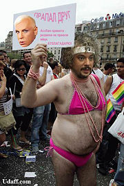 То есть гомики поголовно дебилы и верят всему попало? Кстати да. Только вот демонстрировать ее рисковано. А нас то много, нам не страшно Ну это он напрасно канеш(((