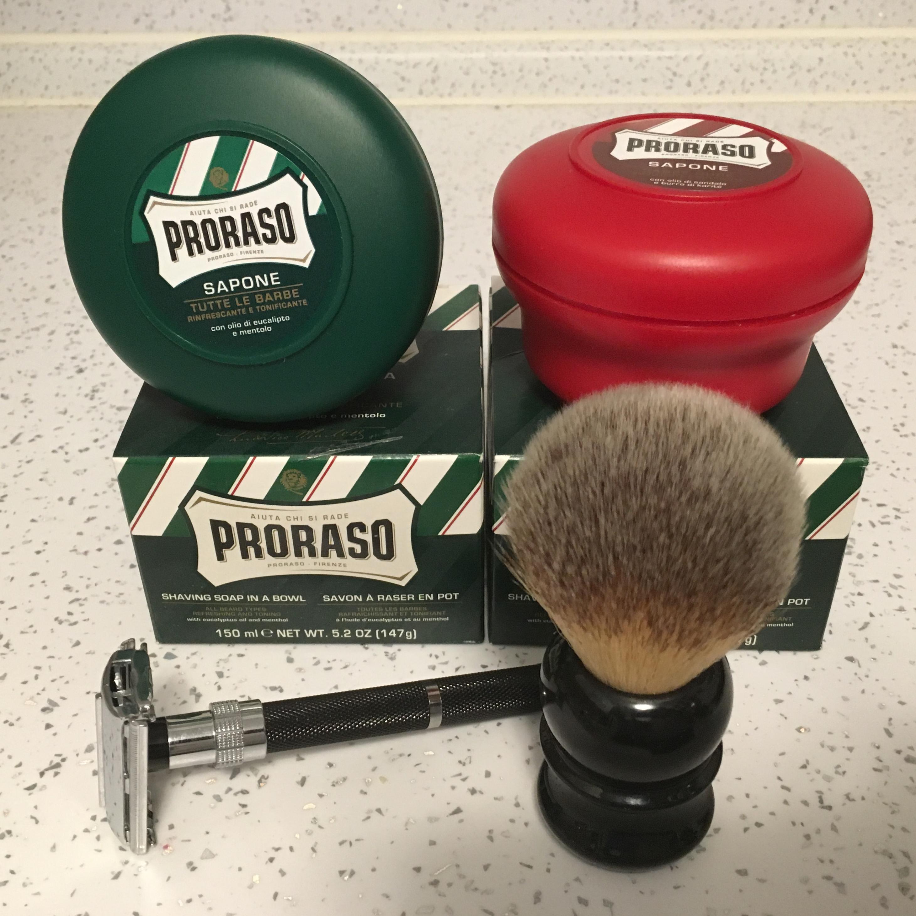 Вот, товарищу в подарок взял. Мыло итальянское, Прорасо. Станок Parker бабочка. Помазок из синтетического ворса. Он раз в неделю бреется, думаю будет доволен.