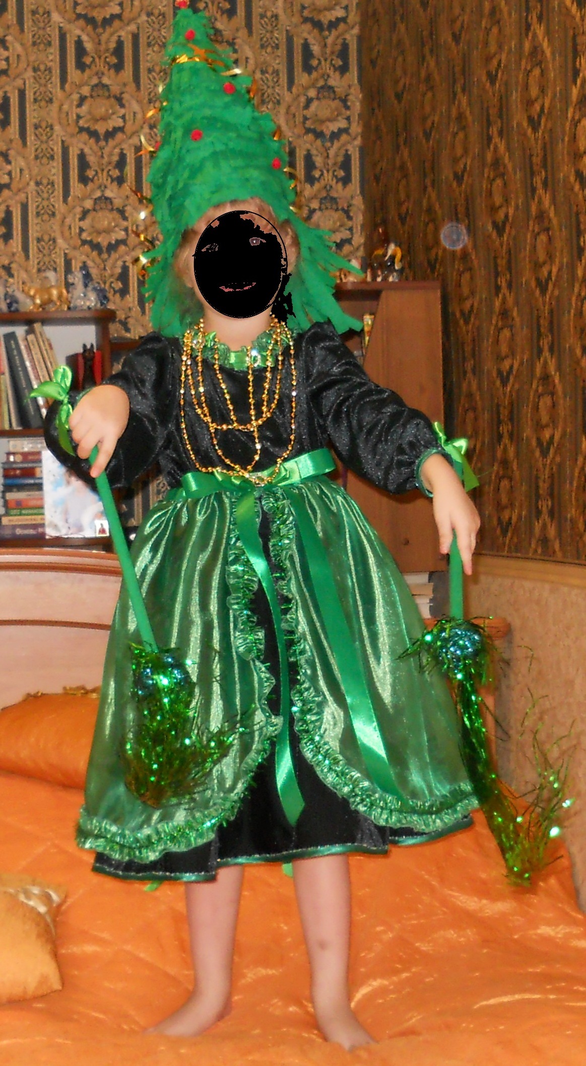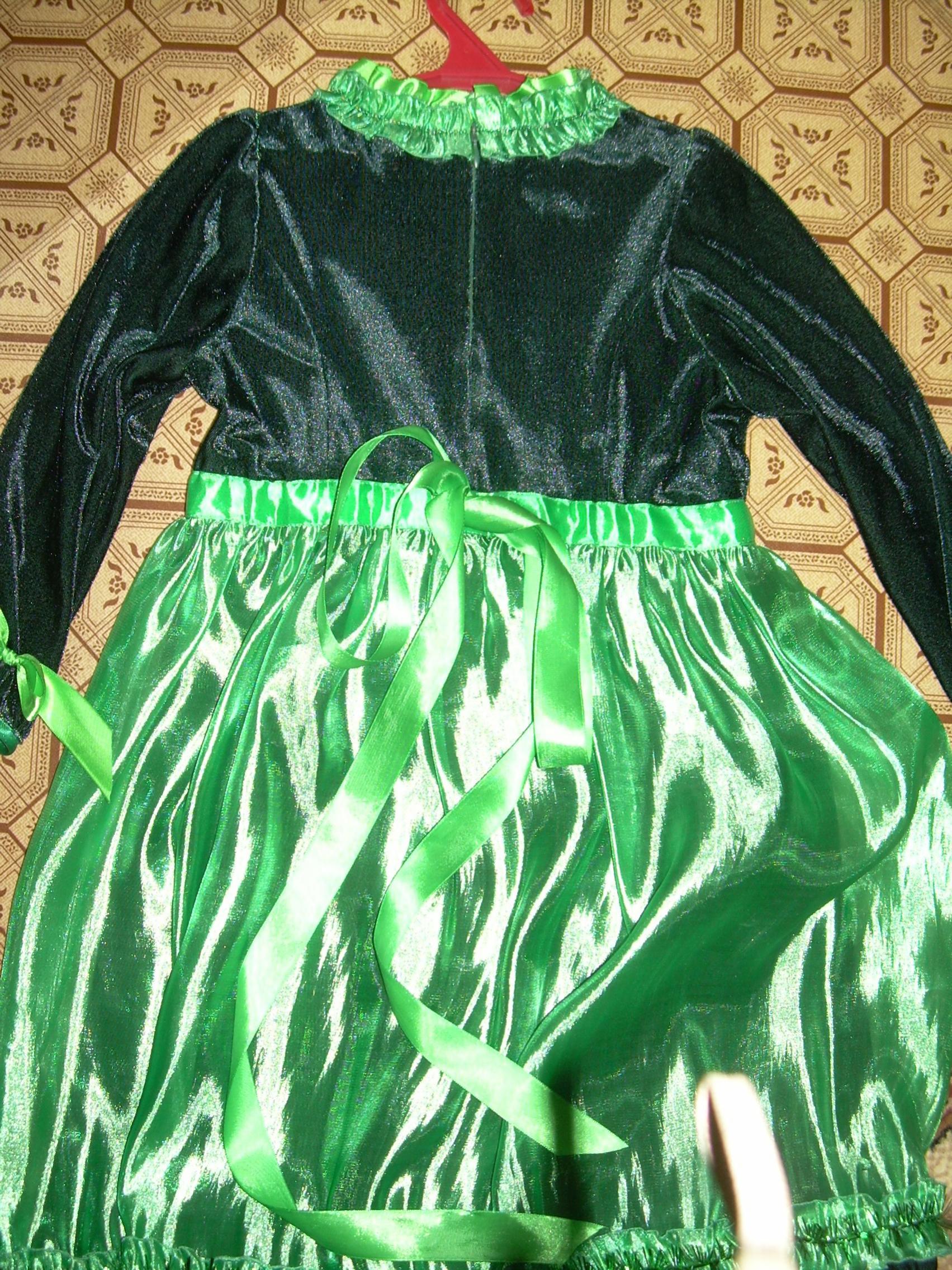 Продается костюм елочки для девочки 4 - 6 лет. Ручной работы. Сшит из бархата, органзы, расшитый пайетками, бисером,мишурой и золотыми пряжками с камнями, сзади костюм затягивается на поясе в шелковый бант.Головной убор из гофрированной бумаги с элементами декупажа.К костюму два пышных подюбника, две гирлянды (в руках). Качество отличное, все швы внутри обработаны, чистая и аккуратная работа. Одевали один раз на утренник.Такой костюм один, ваша Елочка будет самой красивой.