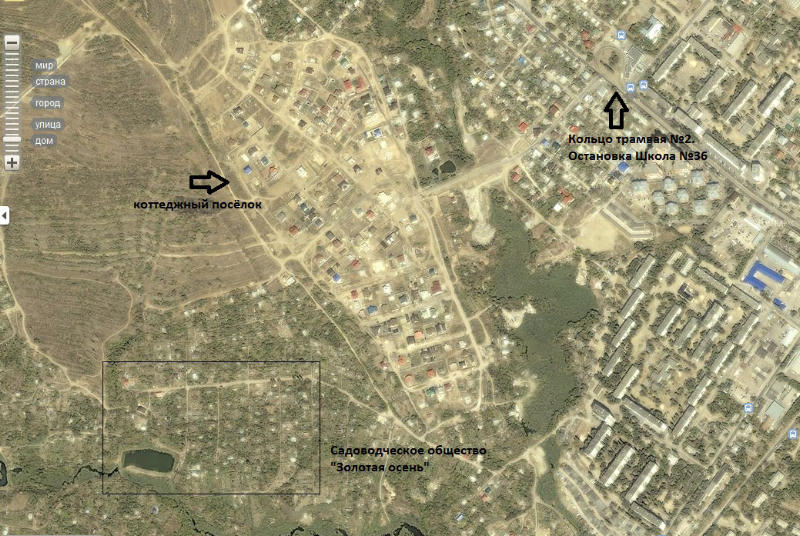 Здравствуйте. От оврага по дороге около 1 км. Я на схеме постарался отобразить путь от конечной трамвая №2 "Школа №36" до дачи. Длинна этого пути около 1,5км. Если идти от конечной маршрутки №75 то путь до дачи 900м. По поводу газа я точно не знаю, не хочу вас вводить в заблуждение. Летом, каждый день по пути на дачу ходил мимо коттеджного посёлка. В посёлок через дамбу через овраг проведен газ и вода и канализация. Председатель несколько лет назад грозился благоустроить общество, но пока тишина. Разумный торг - приветствуется.