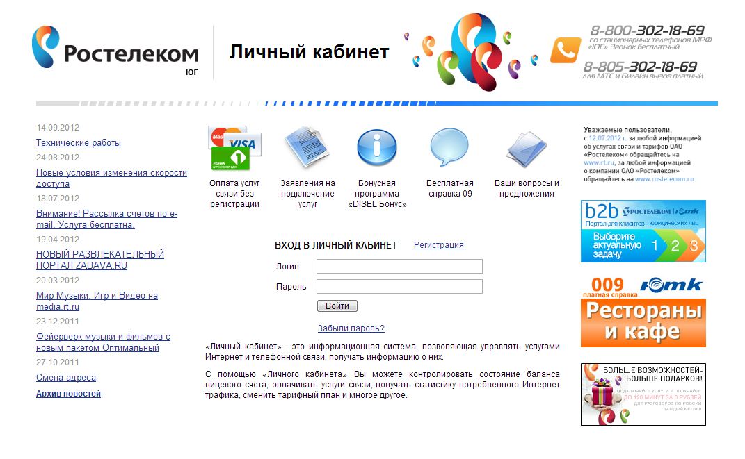Я немогу в него зайти. Я уже таким способом заплатил просто указав номер телефона - спасибо, ненадо, деньги потерял. Вы видимо совсем не читали мои предыдущие сообщения и вообще не вкурсе наполнения сайта провайдера. Ещё раз пошагово: у меня закончился интернет > открываю браузер и автоматом попадаю на сайт Росстелекома с просьбой зайти в личный кабинет. В кабинет зайти немогу, нахожу большую кнопку "Оплата услуг связи без регистрации" жму её > "Оплата картами VISA, MasterCard, Diners Club" > и о чудо! Я нахожусь оказывается типа в личном кабинете: Первая же надпись гласит "Оплата услуг связи картами VISA, MasterCard, Diners Club в личном кабинете". Какого лешего вы платите своим web прогерам, если они даже текст поправить немогут. Далее жму "ПЕРЕЙТИ К ОПЛАТЕ" где вижу выбор между вводом номера телефона и номером договора. Номер договора на интернет там неподходит, я ввел номер телефона. В итоге деньги попали на счет телефона ибо там всего два пункта: оплата междугородки и "Ростелеком (ЮТК) местная и внутризоновая телефонная связь" Объясните мне, куда я должен нажать, чтоб оплатить интернет без входа в личный кабинет с этой страницы: