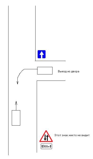 Чтобы не создавать лишней темы. Ситуация как на картинке. Летят по встречке не замечая знака участок с двусторонним движением. Выезжая из двора по идее всех должен пропустить, но когда при свободной правой полосе все летят по левой (в правом же ряду не понтово ездить)? Пару раз выезжал, до встречной машины довольно далеко, но мне в лоб летят, видимо думая, что я кретин куда еду, сигналят фарами мигают. Один раз даже остановились лоб в лоб, пошли знаки смотреть.