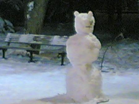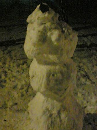 Doctor Zlo, это же лисья морда в профиль. ИМХО. Вместо ушей - лапы сосны. ---------- Сообщение добавлено 18.01.2012 14:20 ---------- minitor, это же маленькие привидения, они сами боятся и поэтому стоят между деревьев ---------- Сообщение добавлено 18.01.2012 14:21 ---------- А почему у снеговиков не должно их быть? Просто в советское время мы не всё знали. ---------- Сообщение добавлено 18.01.2012 14:26 ---------- А в прошлом году у того же Музыкального театра со стороны Лабамбы я увидела снеговика прямо на стволе дерева! Расплюснутого, с раскинутыми руками (и ногами), чью-то жертву...