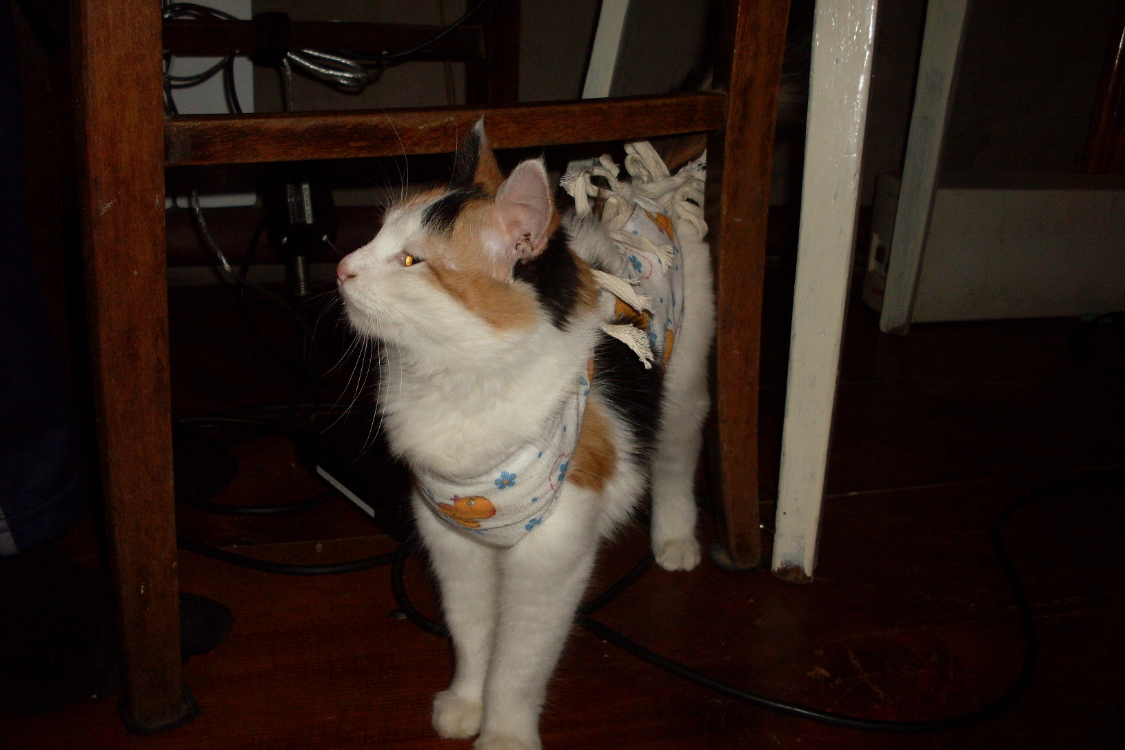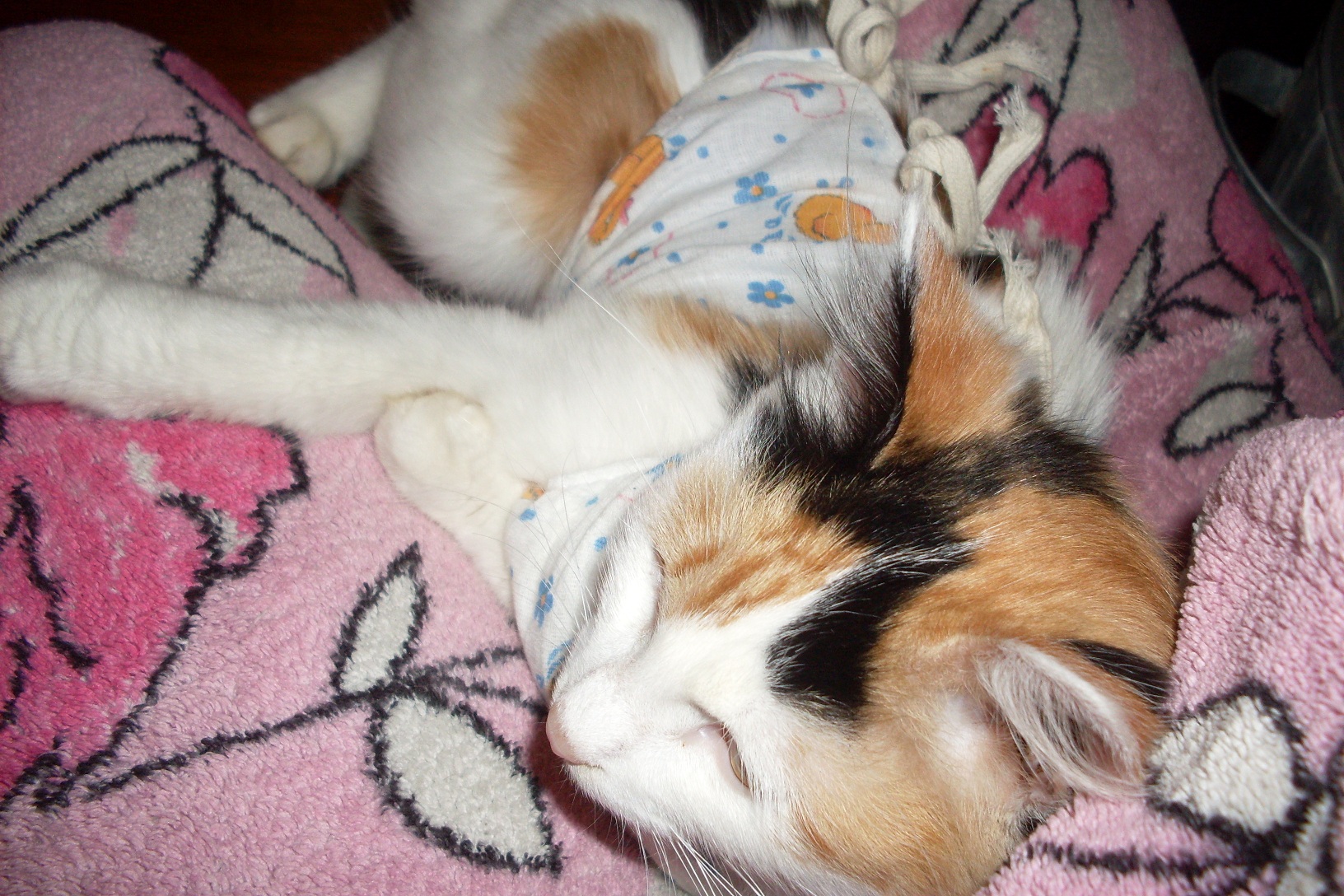Приехали мы домой, она нас очень радостно встретила. Промыли шов,протерли, поменяли попону. Шов сухой и чистый. Сделали укол, настроение хорошее. Маруся оказалась очень умной, знает свое место, показали где она должна спать, там похоже весь день и продрыхла. Ничего не напакостила, в туалет ходит куда нужно. аппетит хороший, молоко за ушами свистело. Она оказалось наркоманом на ласки, не угомонная. Мне кажется она была домашней, слишком уж ручная.