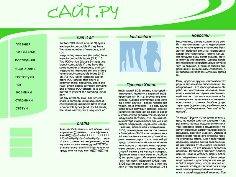 Прикольно, мне нравится!!! Только, где написано Сайт.ру там надо что-нибудь нарисовать, может логотип сайта или о чём будет сайт. Например свои фотки маленькие.