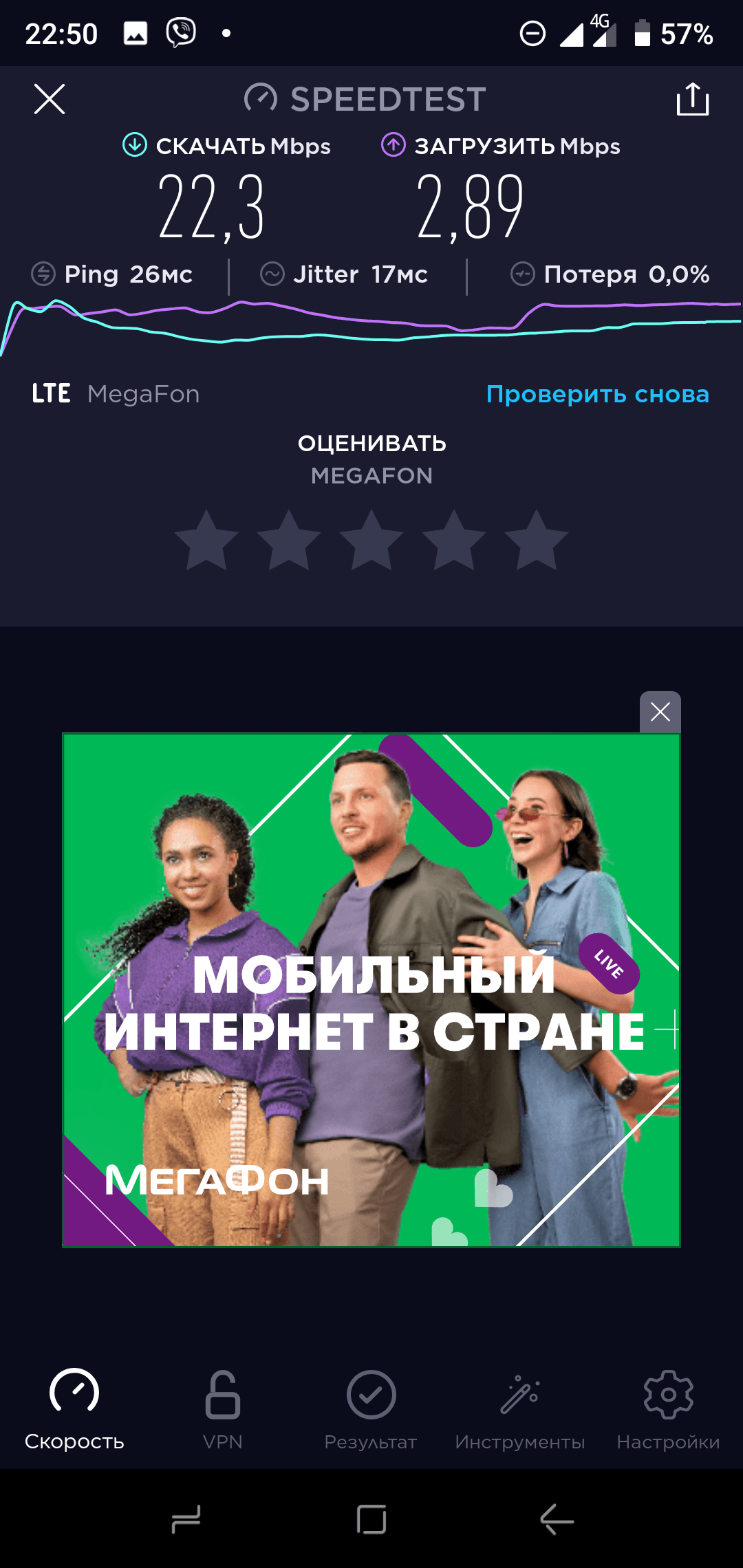 Что-то последнее время скорость у мегафона совсем плохая стала. А у теле2 — наоборот — выросла и стала довольно стабильной 10-20 мбит в обе стороны. Чувствую, пора их наказывать рублем потихоньку.