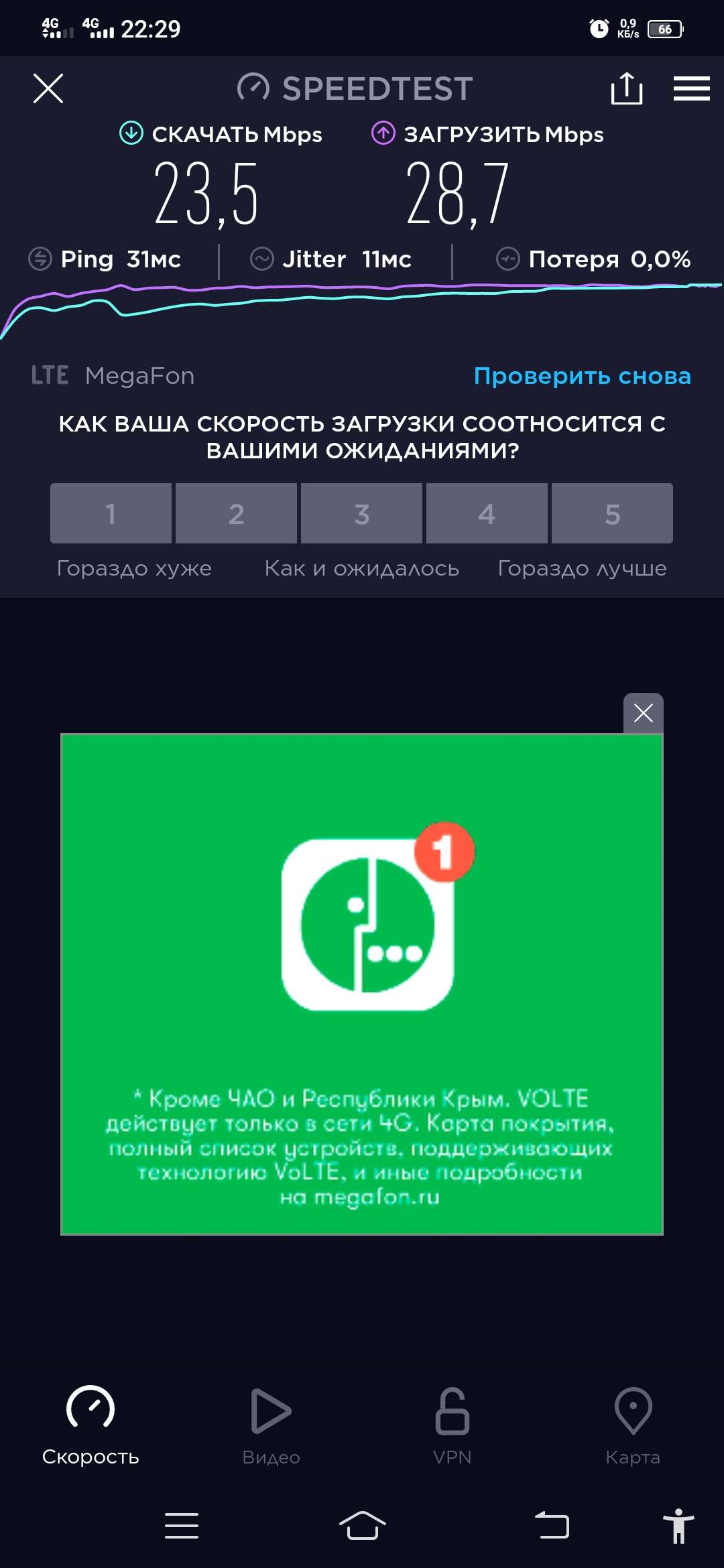 У меня что у одного в городе Мегафон как работал нормально так и работает? Специально сделал тест. Ночью будет ещё быстрее. Спартановка.