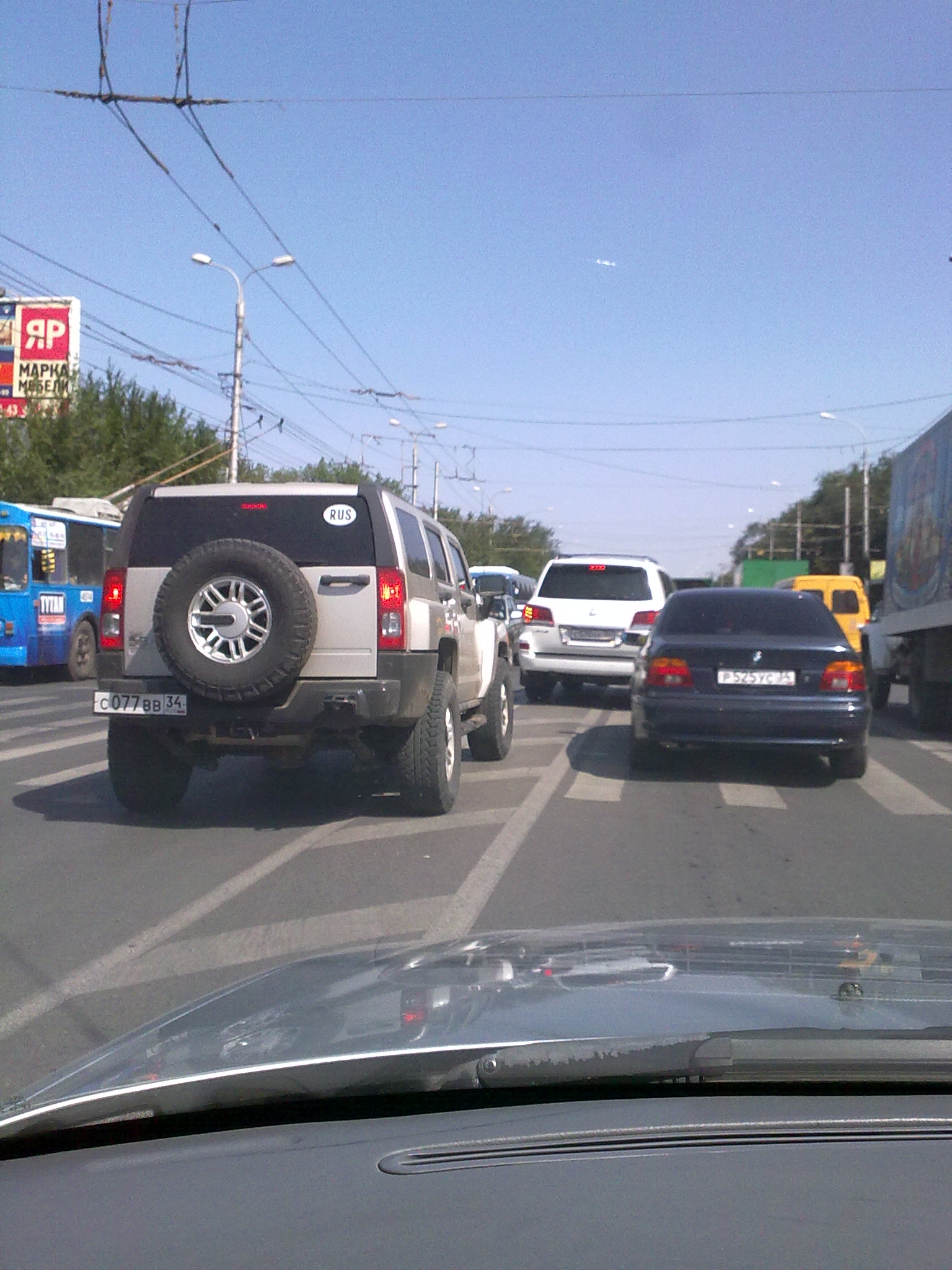 Обещанные фотки. Жаль не получилось видео, как эти перцы по встречке шуранули напротив эльдорадо. Причем, хаммер по второй полосе гнал, а бумер решил к эльдорадо свернуть. Если бы они столкнулись - вот это радость бы была гайцам.
