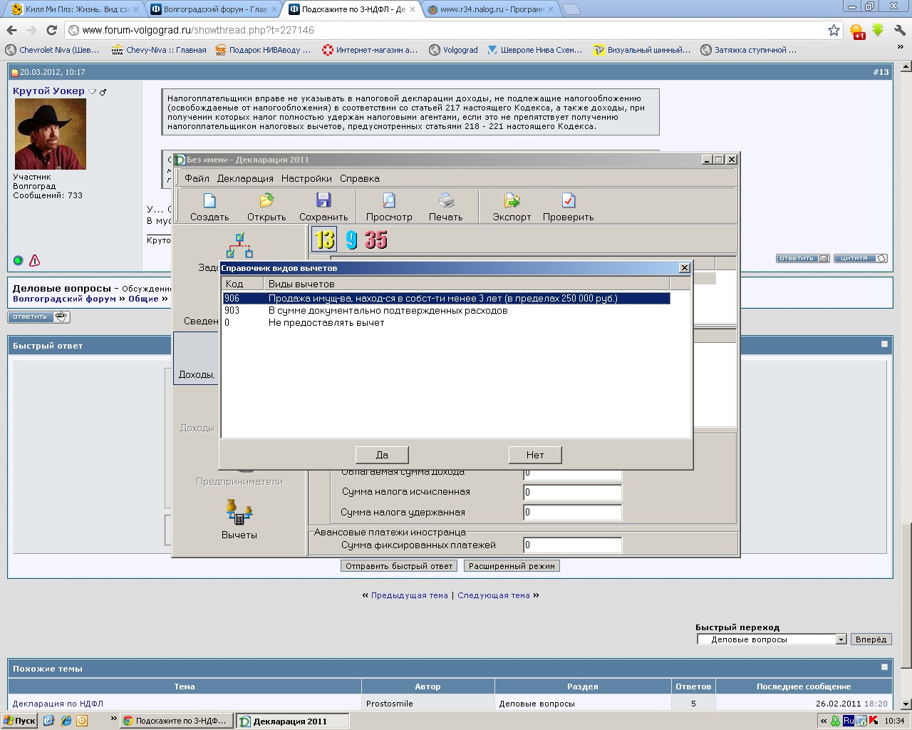 sparrow, я с сайта налоговой скачал программку, там она все вычеты возможные показывает. так что все верно говорят. если имуществом владел более 3 лет, нет налога. если меньше 3 лет, но продал имущество дешевле 250 тыс., то тоже не налога.