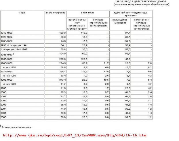 Тут кто то интересовался строительством жилья в "те" и "эти" годы, правда только до 2005 но думаю что за последние 5 лет особого скачка не призошло: