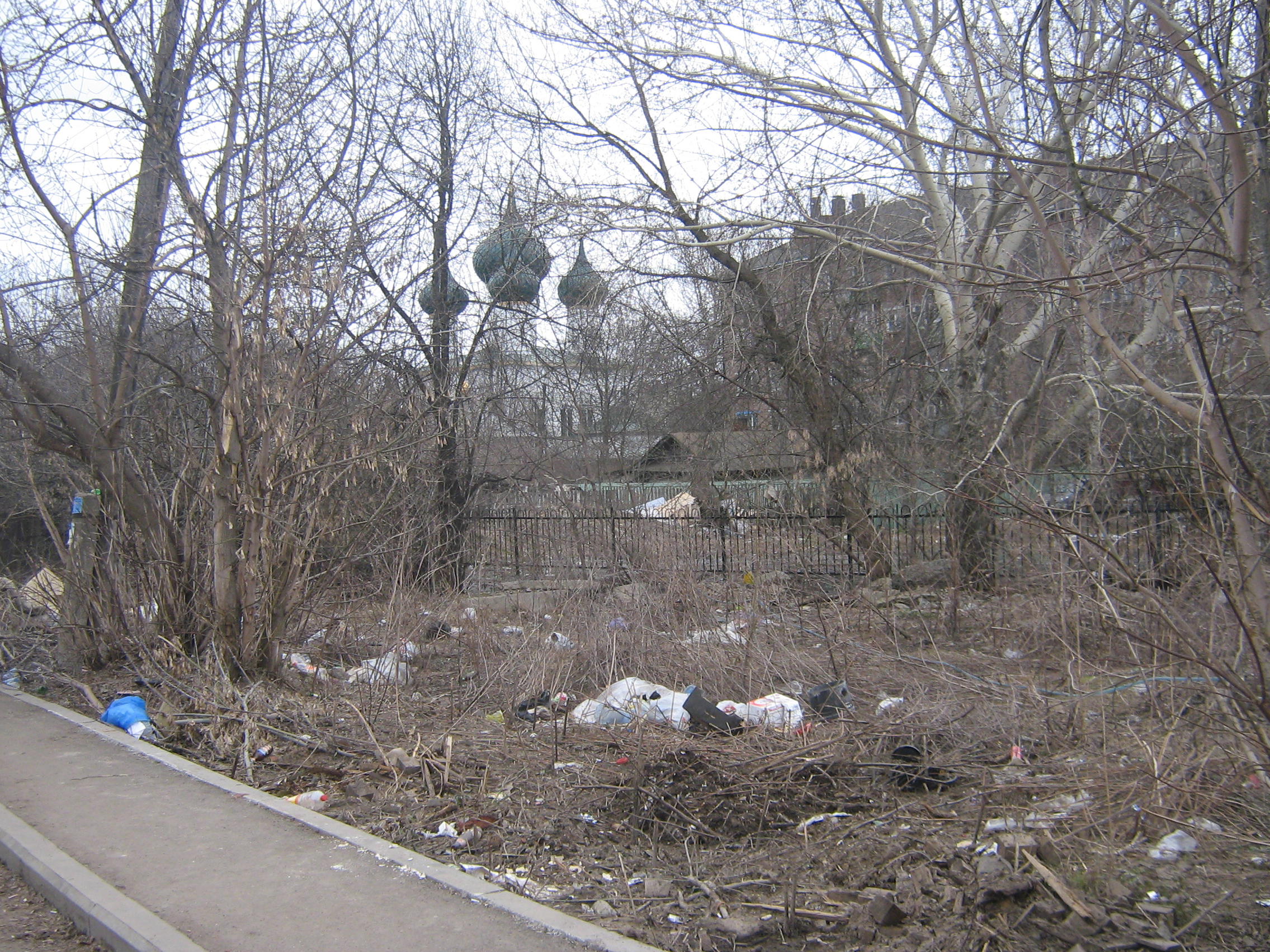Церковь недействующая, территория вокруг церкви в полном ушлепе, последняя фотка - церковная ограда, сразу на ней забор ярославского лакокрасочного завода.