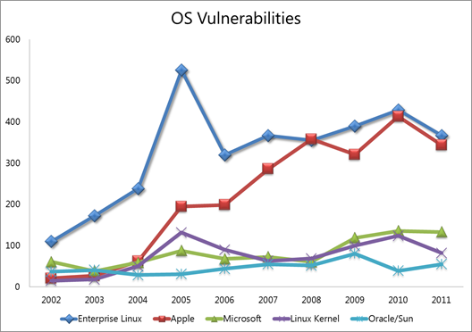 Куклачёв, процент критических для тех и этих систем еще изобразите? на момент приведенной статьи в RHEL 3 было ~1800 уязвимостей, в винде сервер 2003 ~500. при этом у винды 36-40% критических, у RHEL - 10% кстати у солариса, который в вашем графике от мелкомягких ниже винды находится также не столь хороши дела.