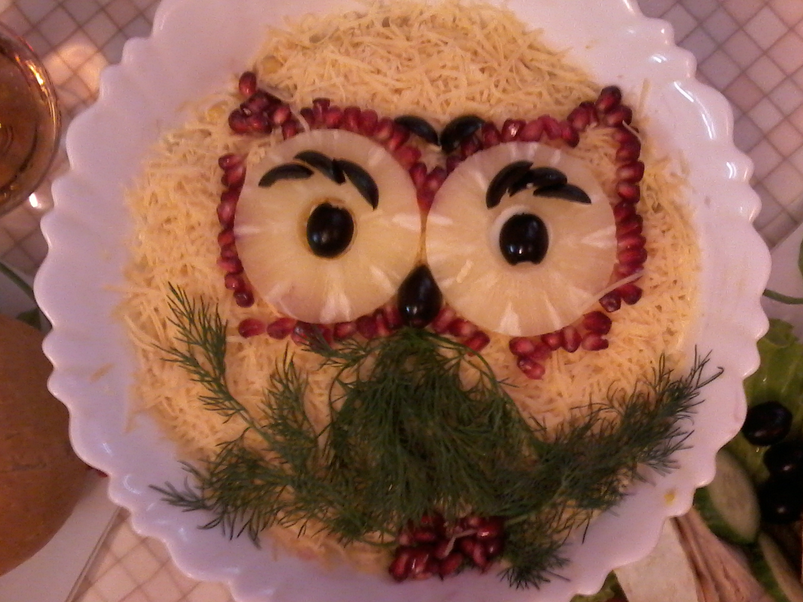 есть у женщин одна особенность - они "чувствуют", только я собрался за изменой к тёте Лейле ехать как вечером меня ожидал вкусный и красивый ужин: салатик с жареными шампиньонами, копчёным мяском, гранатами и ананасом и рулетики-машинки с печенью трески (которую проводник привёз), чесноком и сыром...ну и армянский естесственно Мой ужин вчерашний: