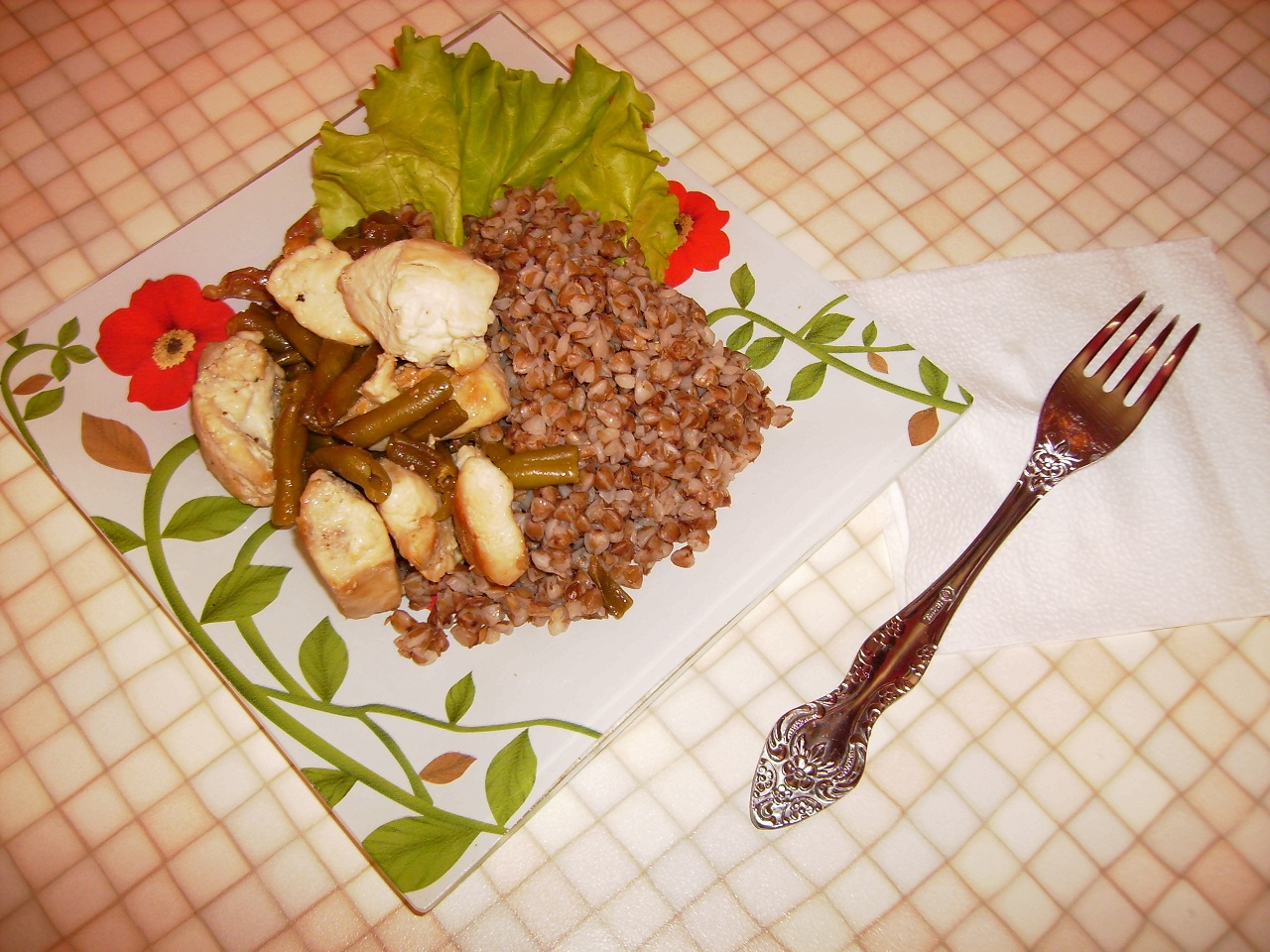 2) дальше вернулась супруженница и решила посадить меня на диету: гречка без всего, белое мясо (грудка) без всего (гадость), стручковая фасоль (очень, кстати вкусная, в итоге на добавку была гречка с фасолью без курицы)