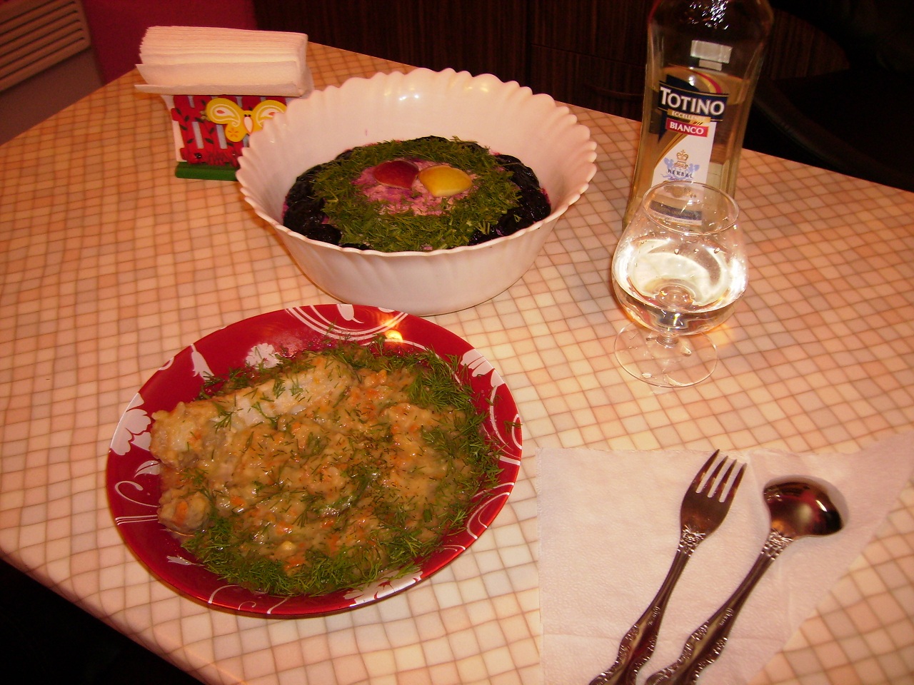 3) далее с диетами было решено завязать т.к. они мне противопоказаны - я злой становлюсь и вчера полноценный ужин был: гороховая каша с рёбрышками и селёдка под шубой, в качестве напитка = польская бьянка, вкусненькая. Был сыт и доволен