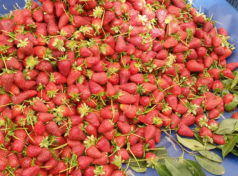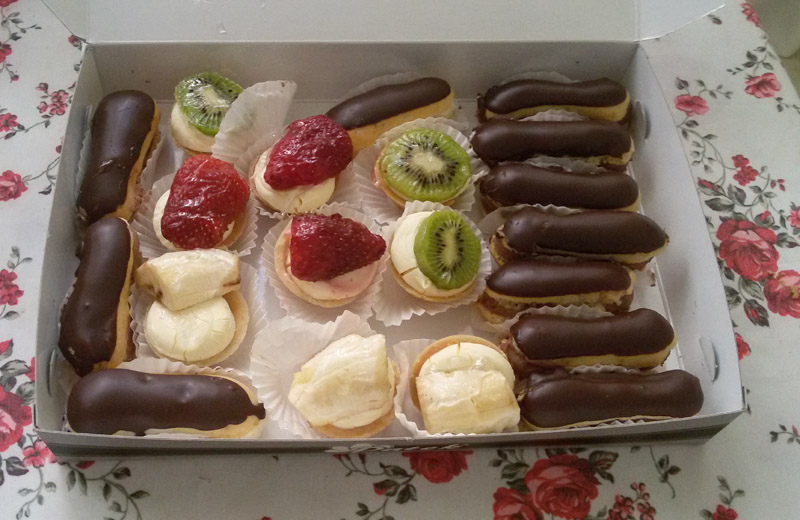 Манты в миниатюре, салатик. На десерт клубника (ну не так много, конечно - это с базара фото) и пироженки (тоже не все, пару штучек)